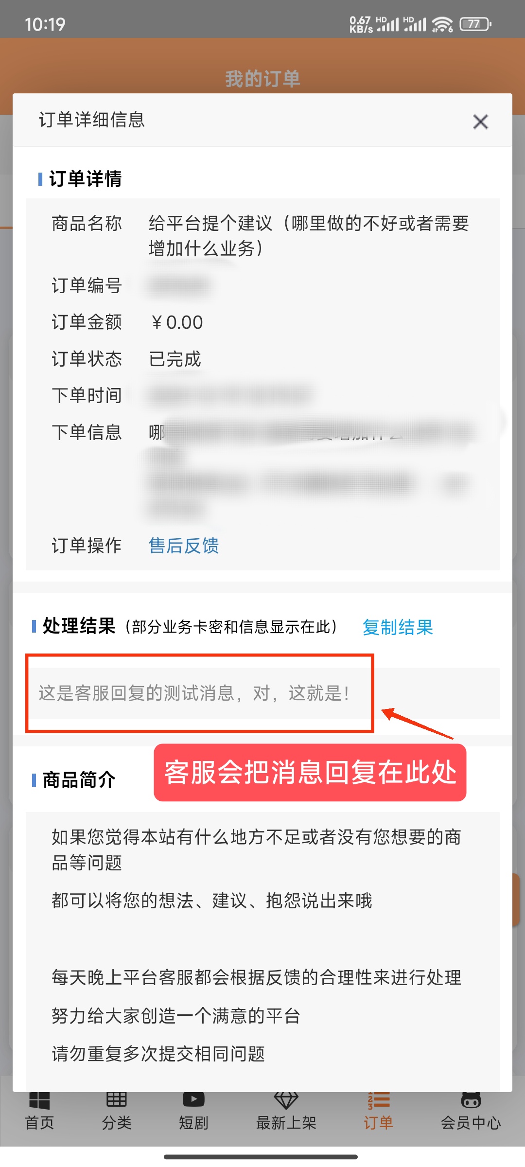 部分结果客服会回复在以下地方: