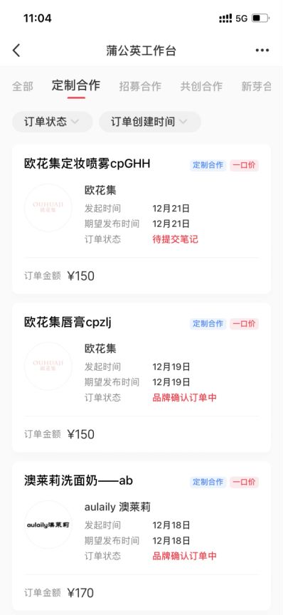 一口价:所有商单,不需要我们自己进行创作,我们只要按照要求上传笔记就可以了,广告报价是一口价,千粉账号150-200一条。不会出现低于150的商单