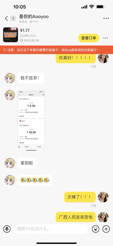 我们的主要操作就是在闲鱼上发布商品,而拼多多的砍刀助力就是商品。那些不想四处求助的用户会找到我们下单购买,有人下单后,其实也不需要你自己去砍价,我们自己把这个任务外包给别人,让他们去做就好了。