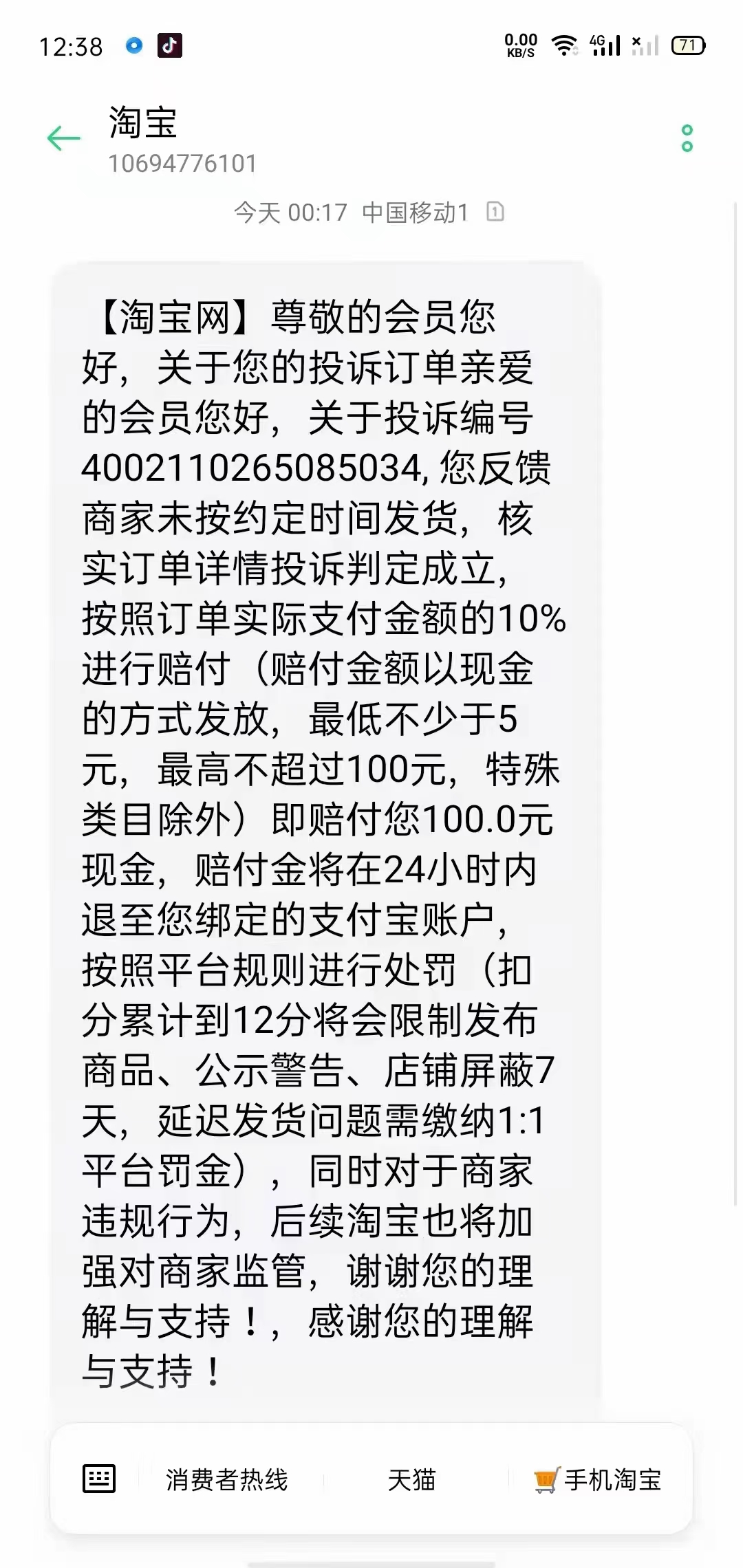 3天就能投诉成功。我们投诉的都是死店铺,商家不干了,赔付的钱是商家的保证金,跟淘宝没啥关系,不存在违规行为, 外面死淘链接20一个。