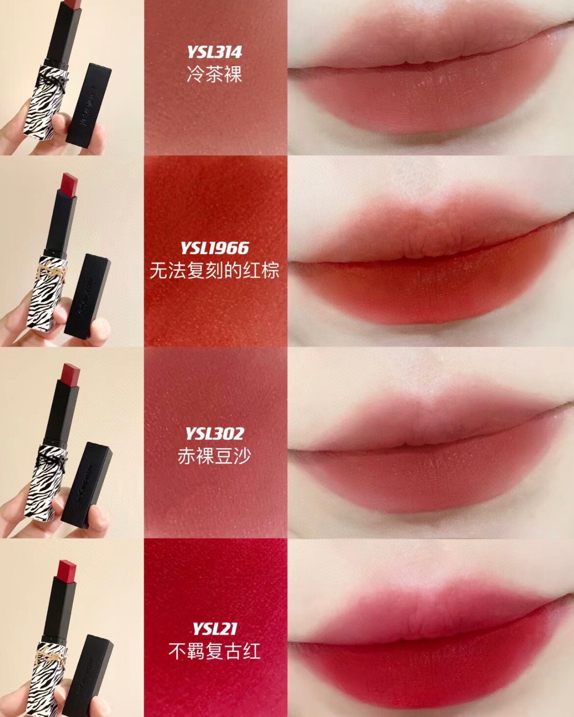 圣罗兰夜光斑马口红2.2g可配中文标4色:1966#-21#-302#-314#。YSL圣罗兰限定夜…