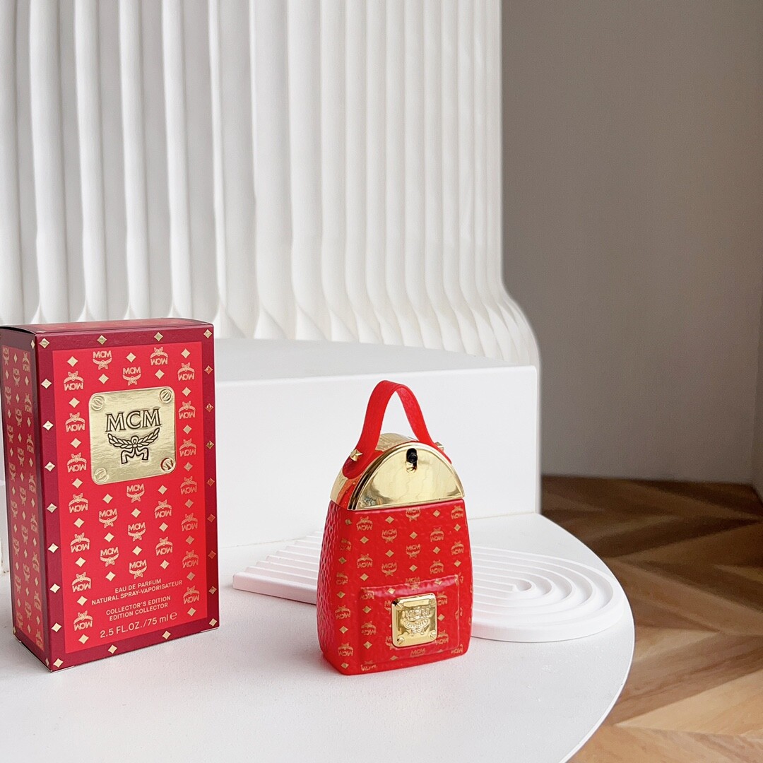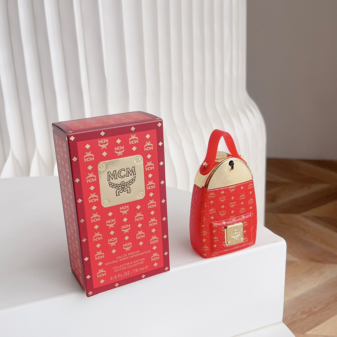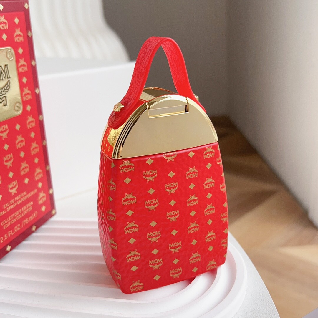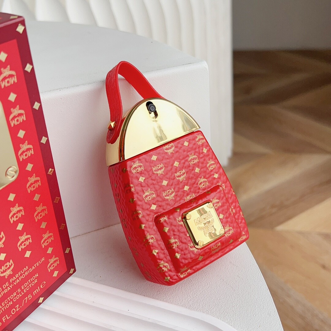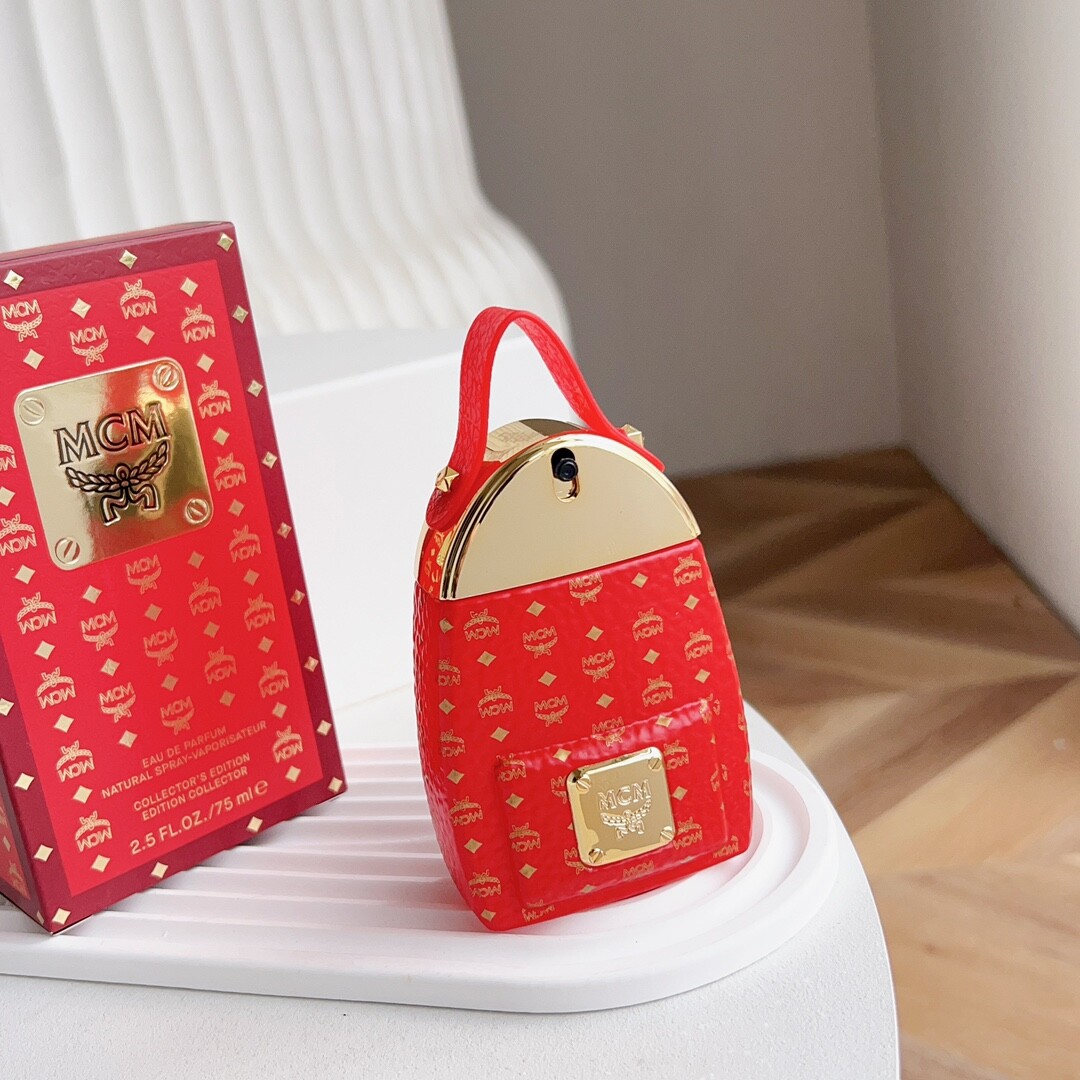 MCM双肩包edp女士浓香水75ml现货4款:经典、黑色、金色、红色MCM新年限量款来啦~|||MCM双肩包新年限量香水75ml木质花香调前调:覆盆子杏花中调:茉莉