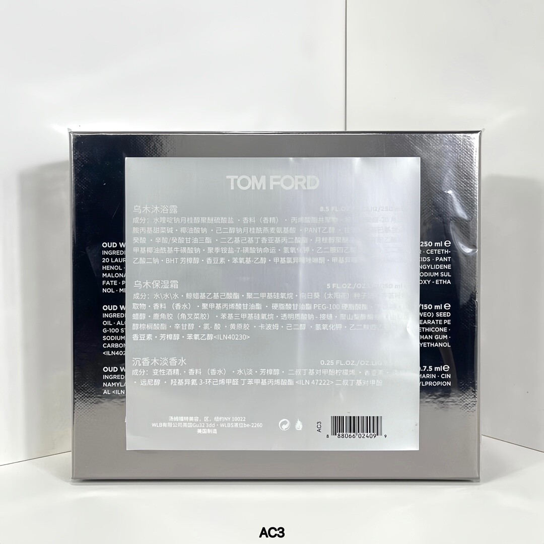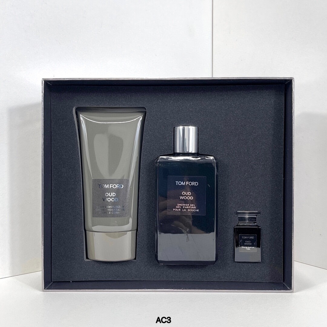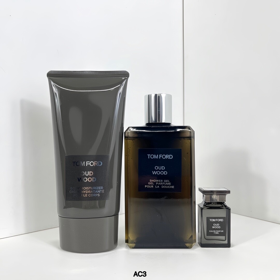 TF乌木沉香全身香氛三件套配礼袋可配中文标内含:身体乳150ml,沐浴露250ml,香水小样7.5ml。