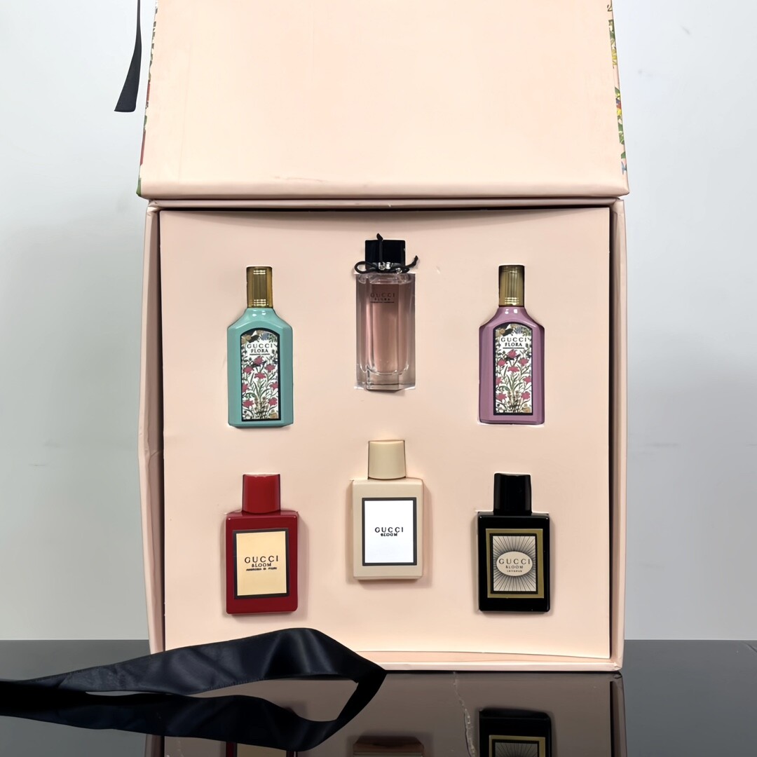 古驰花园奢宠香水小样六件套配礼袋内含:绮梦栀子花,绮梦茉莉,花之舞栀子花,粉繁花,红繁花,花悦魅意!