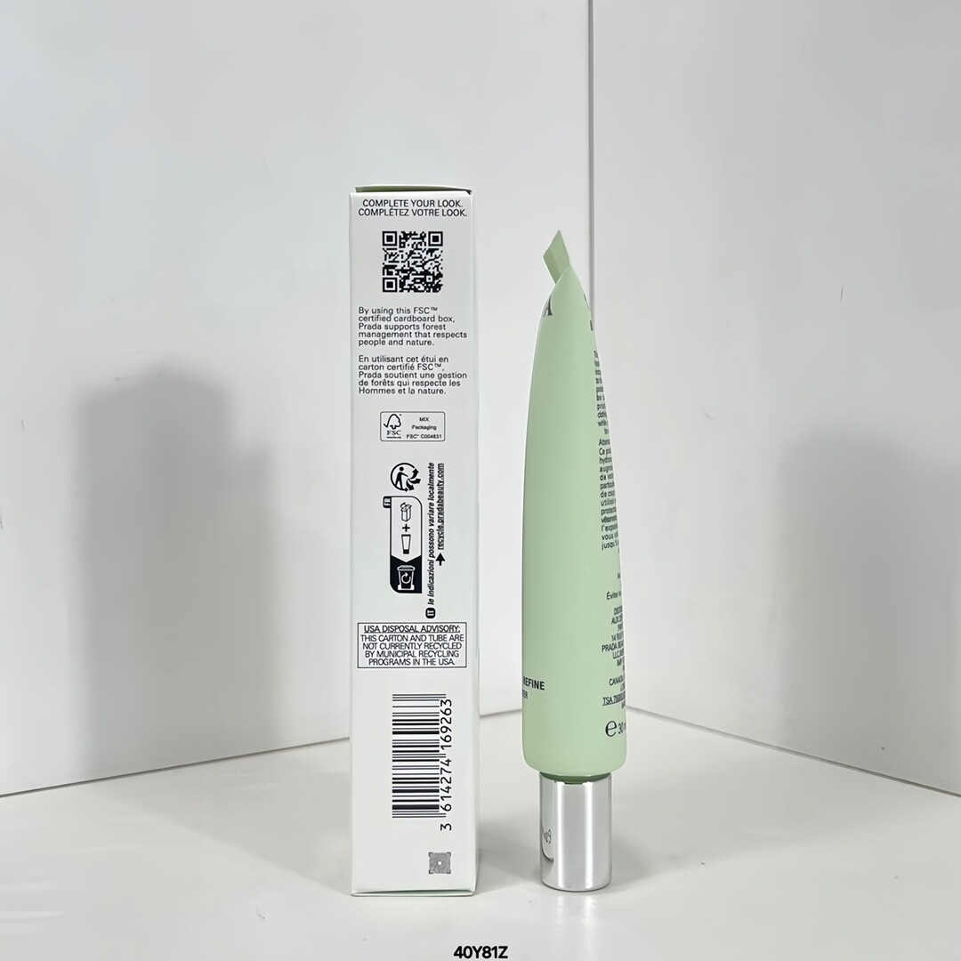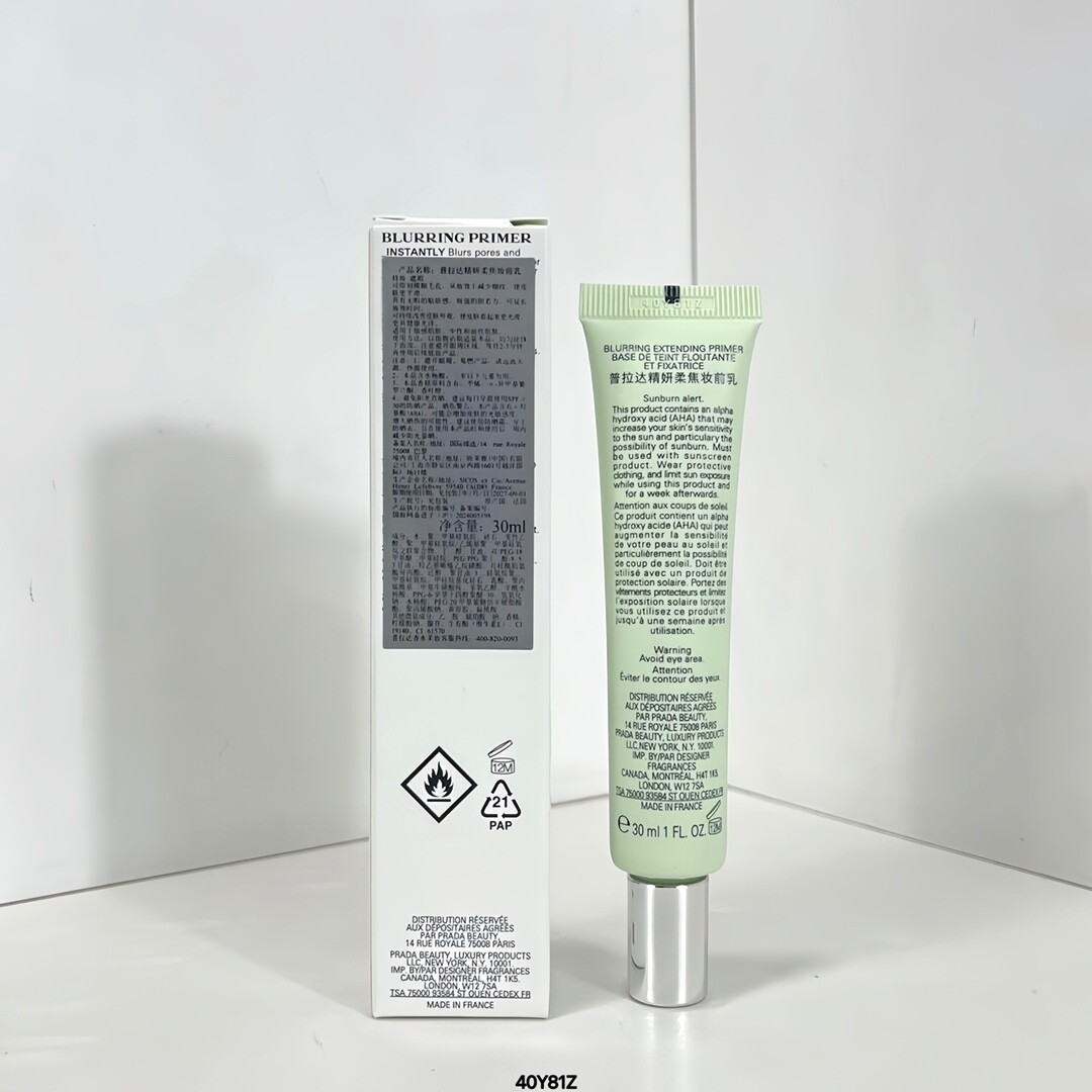 普拉达柔焦妆前乳30ml4PRADA普拉达柔焦妆前乳,适合油皮、混油皮绿色半透明的啫喱质地上脸一抹即化,肤感清爽。推开后是哑光质感局部使用更是精准狙击 鼻翼两侧、额头这些毛孔粗大的重灾区一抹即平,无需全脸厚涂。