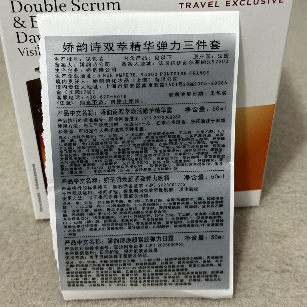 实拍普通版本 2024新版娇韵诗弹簧三件套 带中文标内含:第九代双萃精华50ml+弹簧日霜50ml +弹簧晚霜50ml件12 认准批号:042568A