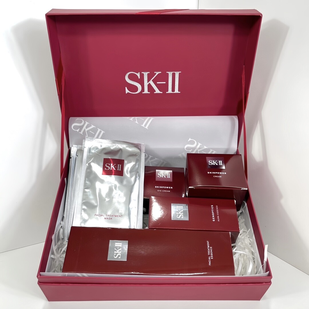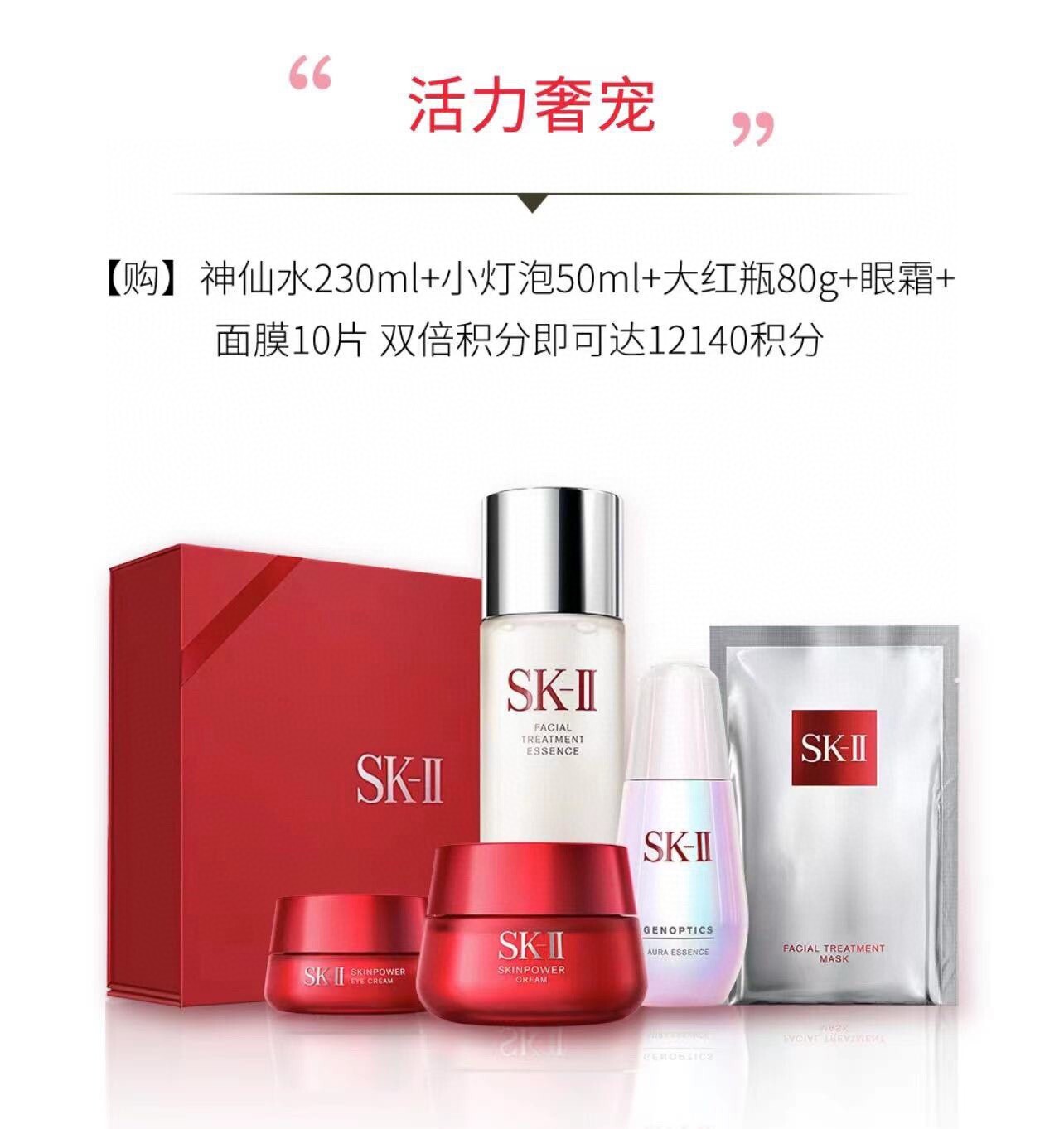 SK活力奢宠礼盒五件套配礼袋无蜡纸!SK2专柜活力奢宠套盒~5件套!性价比无敌~含有:正装230ml神仙水80g大红瓶面霜眼霜15g小灯泡50ml前男友面膜10片!