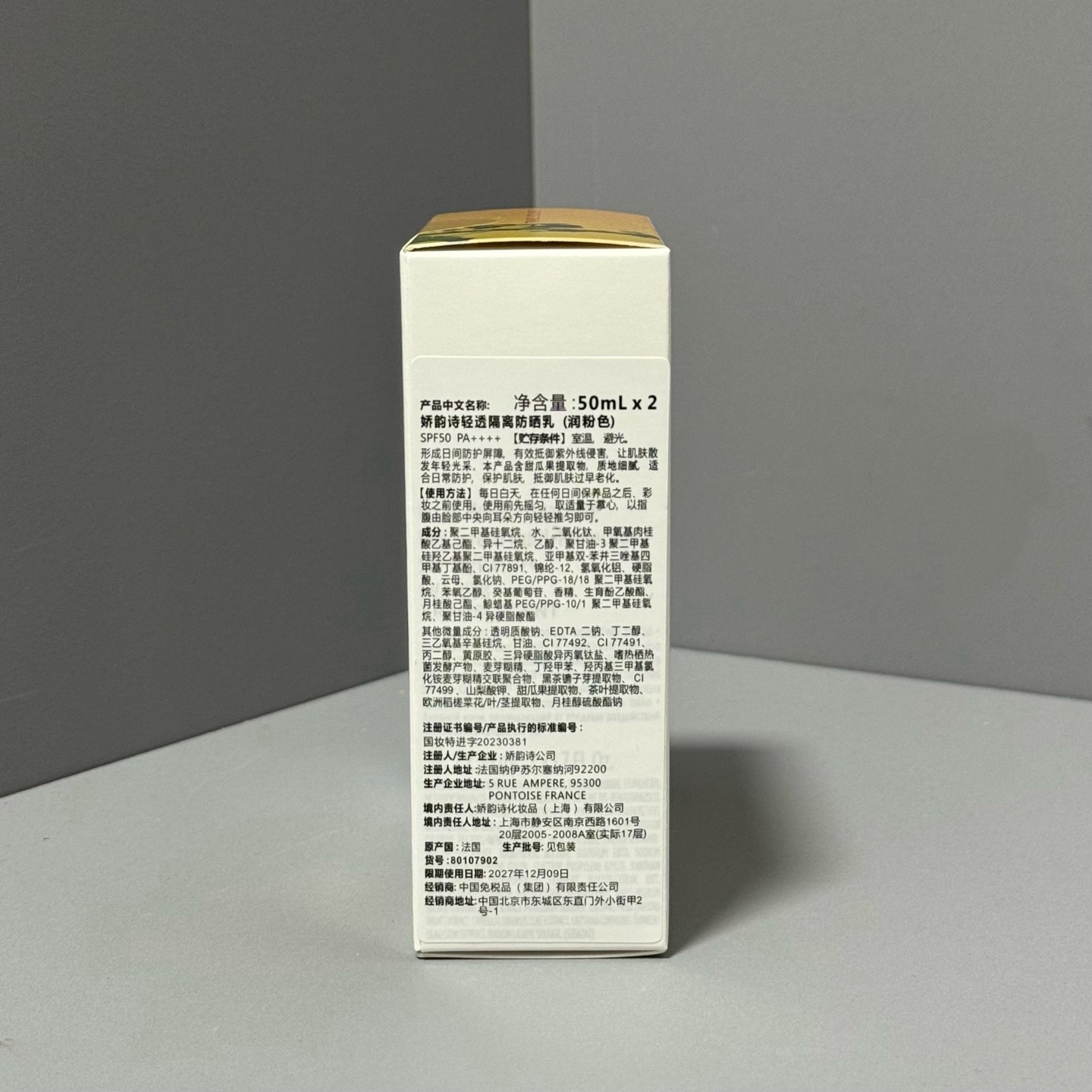 娇韵诗小白盾防晒隔离霜2件套/润粉色实拍现货0449008编码!可配中文标对版对味,官网防伪!润粉色~针对泛红,偏黄,暗沉的肌肤细微瑕疵有一定的遮盖力,带点提亮去黄的效果,可以做为伪素颜神器,方便简单质地都比较水润,轻薄,乳液质地肤感,不黏腻,秒成膜
