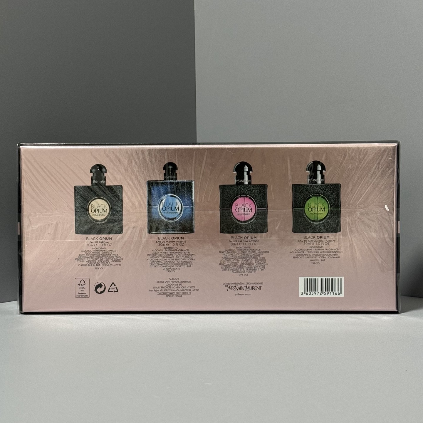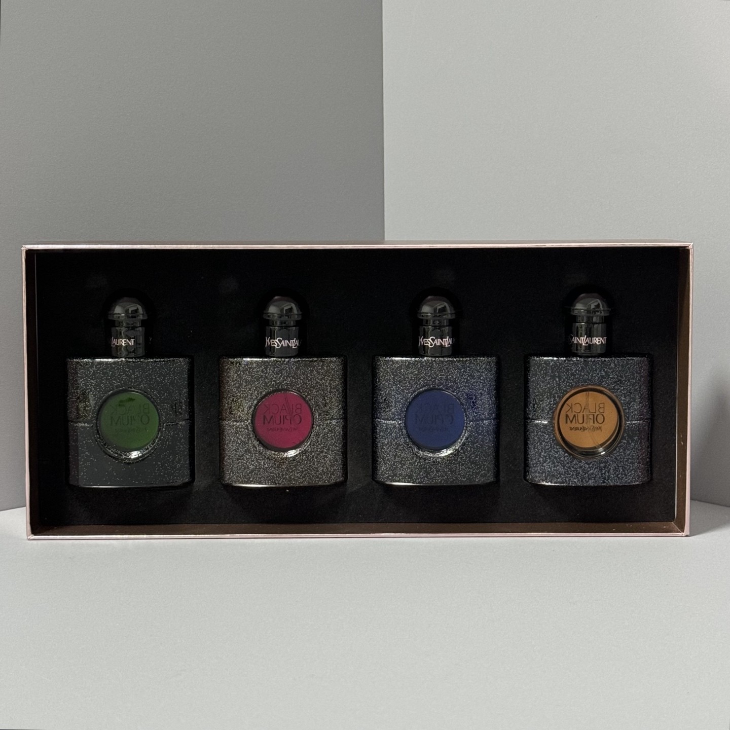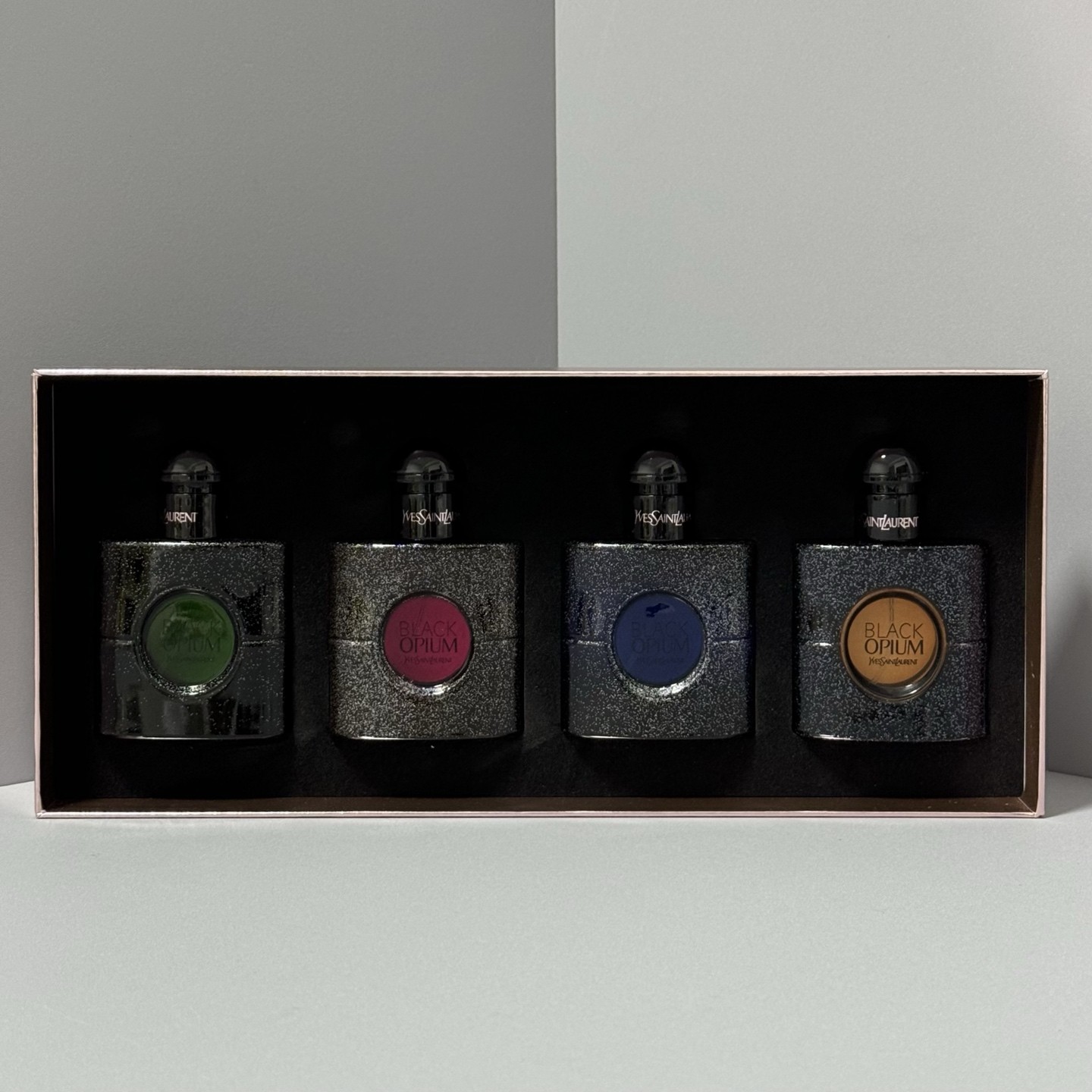 YSL圣罗兰黑鸦片中样香水四件套实拍现货30ml*4,带喷头内含:绿鸦片,红鸦片,蓝鸦片,黑鸦片