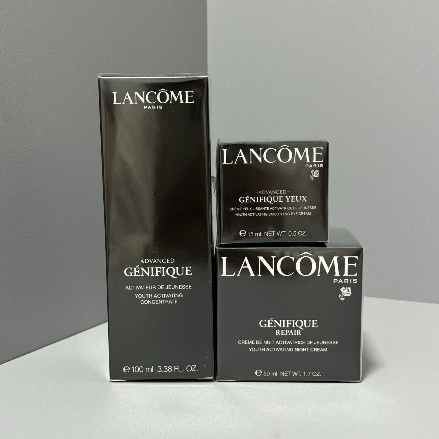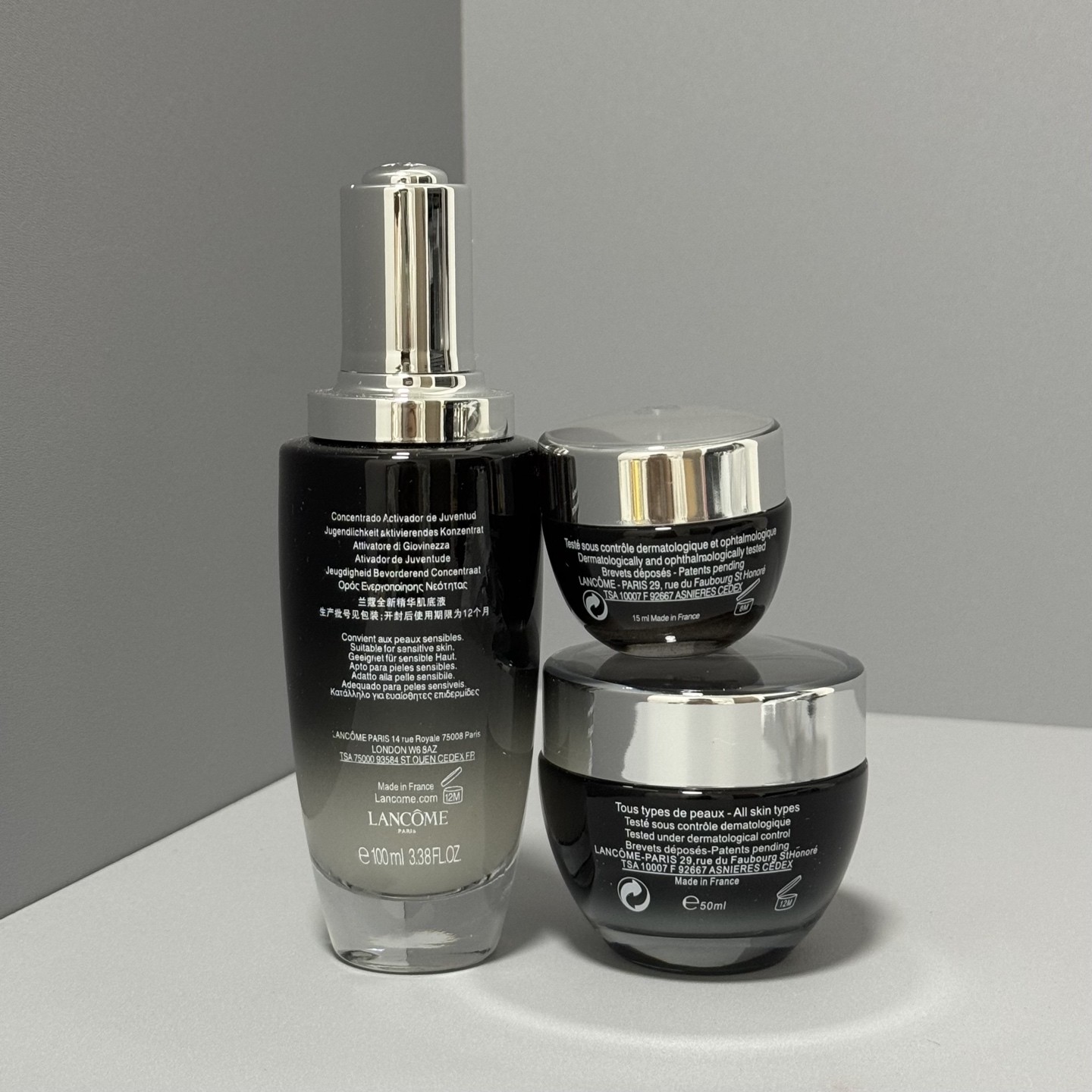 兰蔻小黑瓶三件套实拍到货兰蔻小黑瓶护肤三件套小黑瓶肌底液100ml,眼霜15ml,面霜50ml,兰蔻…