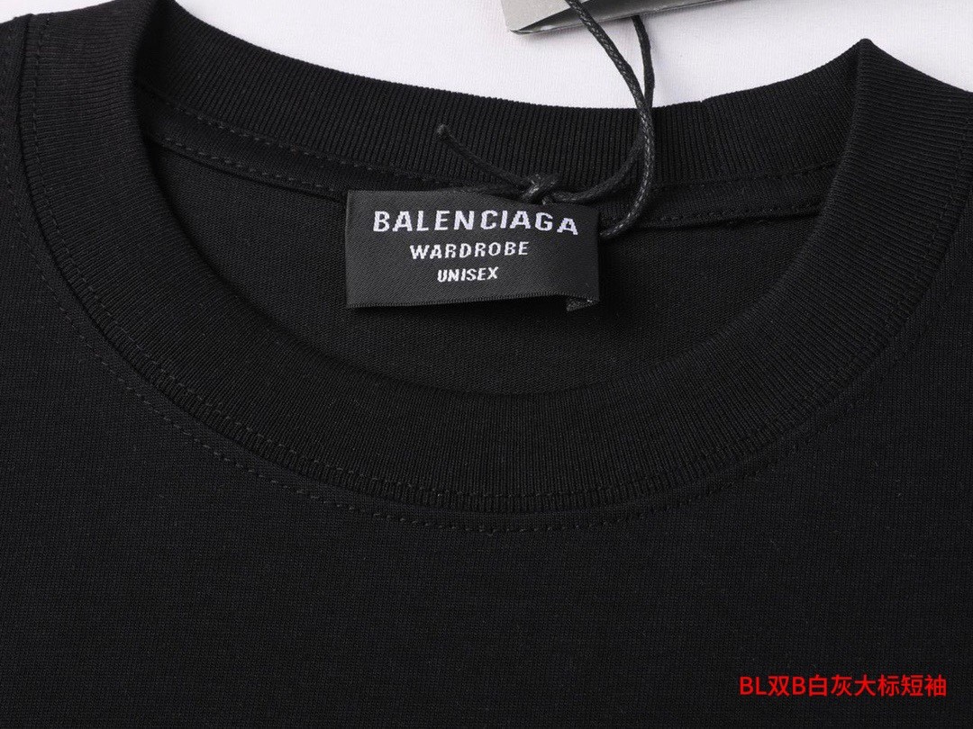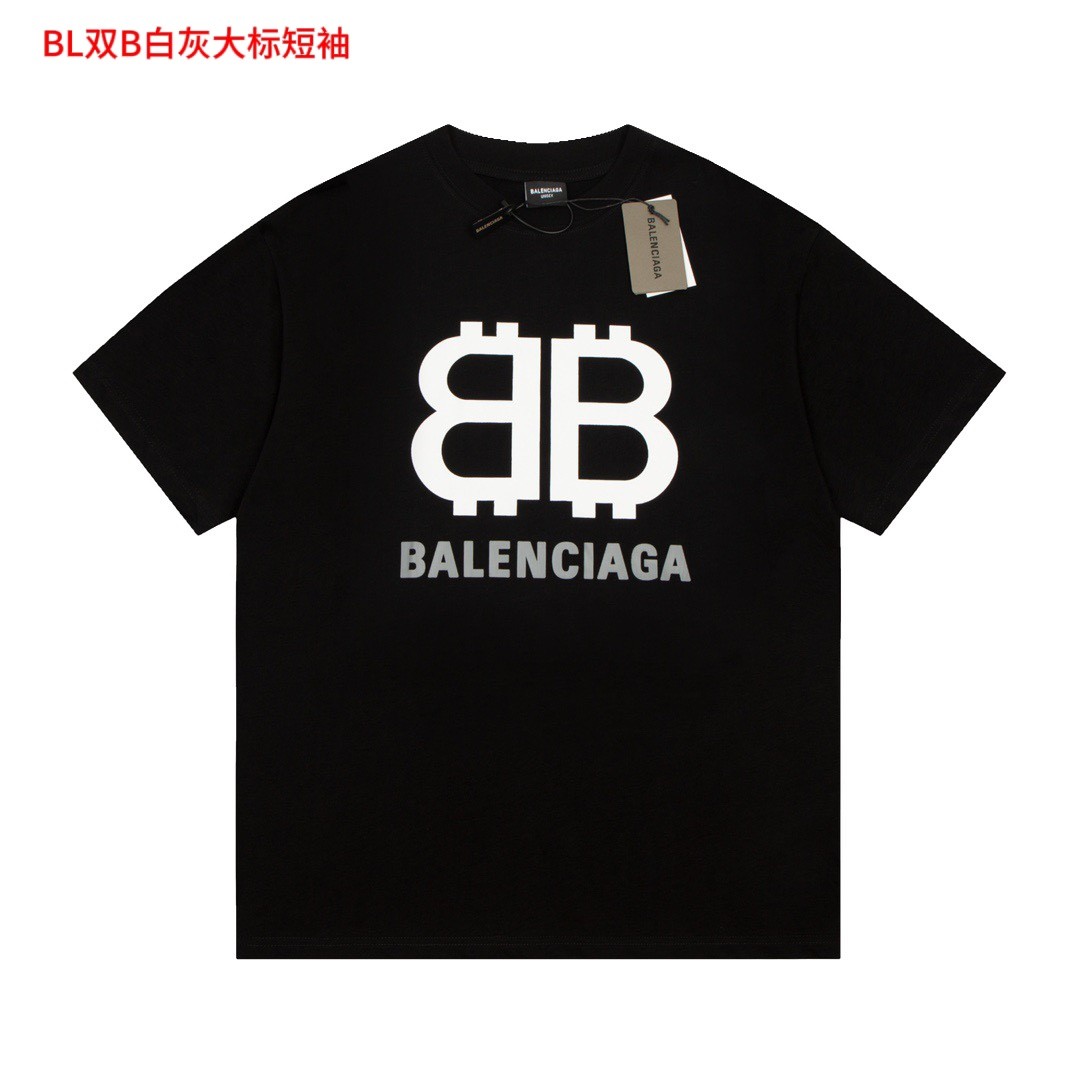 BL双B白灰大标短袖BALENCIAG*巴黎世家23ss胸前双B字母圆领短袖T恤面料采用纯棉面料原版面料 官方同款 定制同缸染面料 手感非常舒服 春夏最新砖柜同步 时尚又个性 超级百搭好看的一款 男女都非常合适 人手必备款 颜色:黑色 尺码:M-4XL