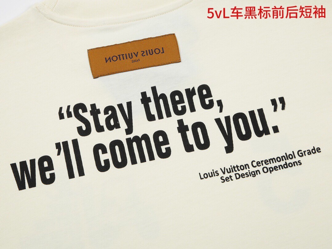 5vL车黑标前后短袖Louis Vuitton/路易威登LV 21Fw 上海走秀VIP限定款圆领短袖T恤版型轻松休闲,不紧身也不宽松,正常版型。正反面1V工作室大型单色印花,倡导了“ Stay there,we' 11 come to you,在这里,我们会你的存在意义Size: M-4xl颜色,杏色