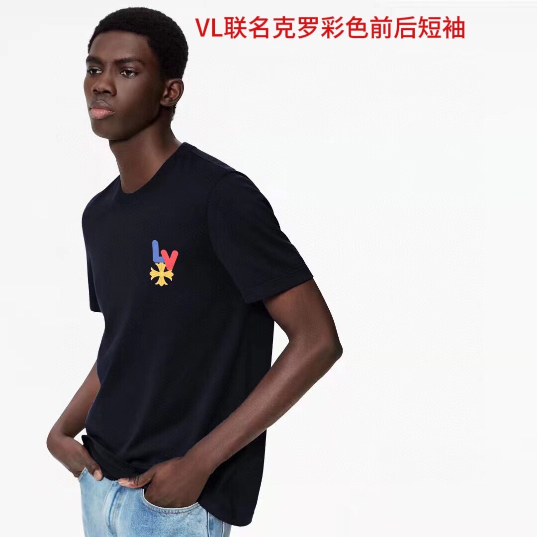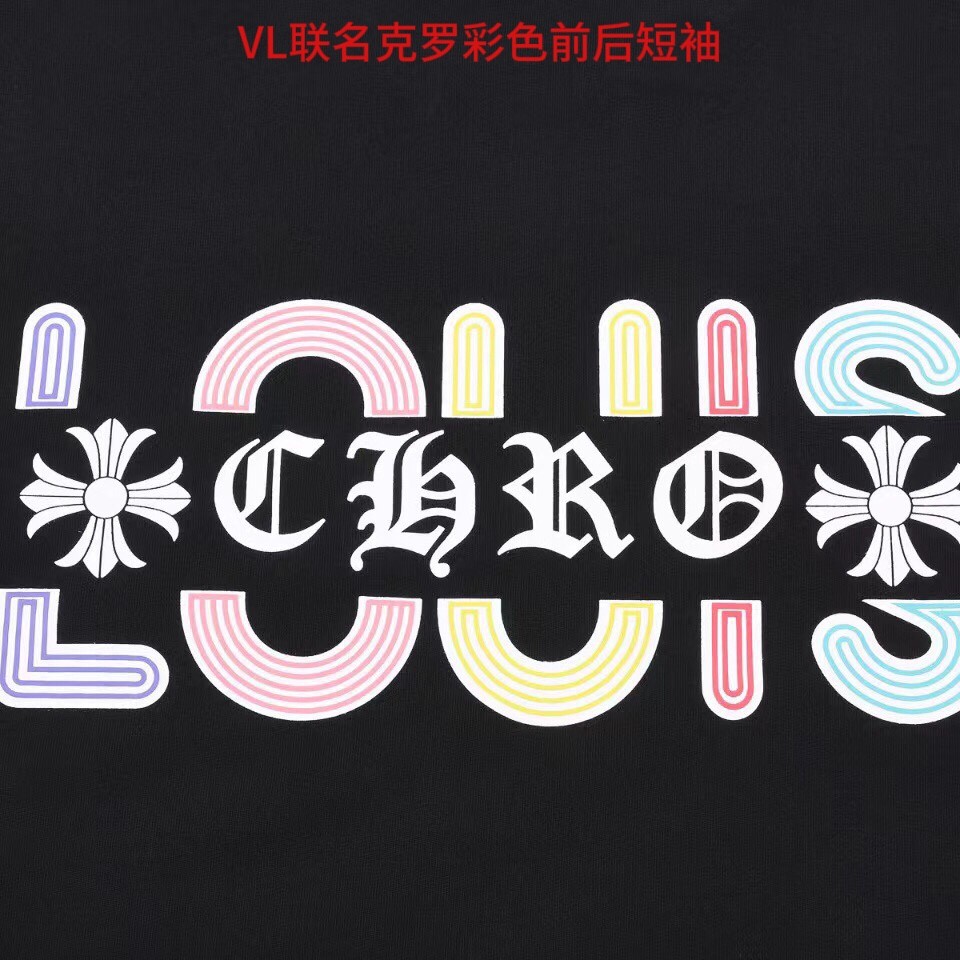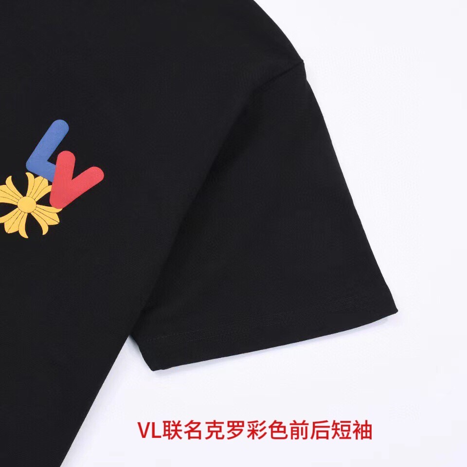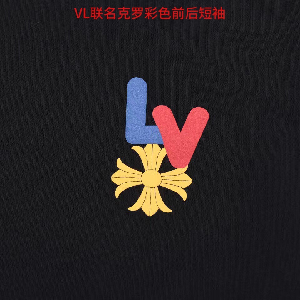 VL联名克罗彩色前后短袖lv路易威登LOUIS VUITTON 驴家1v 经典联名克罗心图案圆领半袖T恤短袖男女同款 情侣款 宽松版型 (最高版本 原版面料 高版本 高品