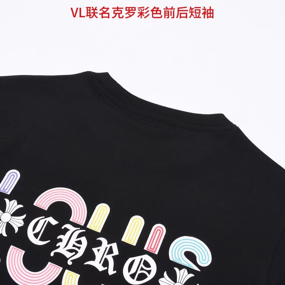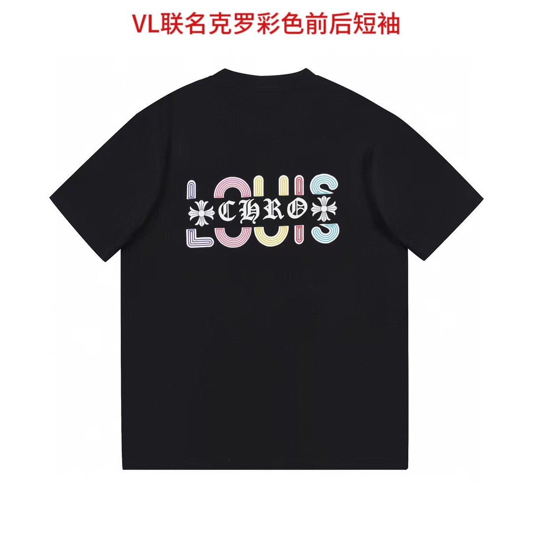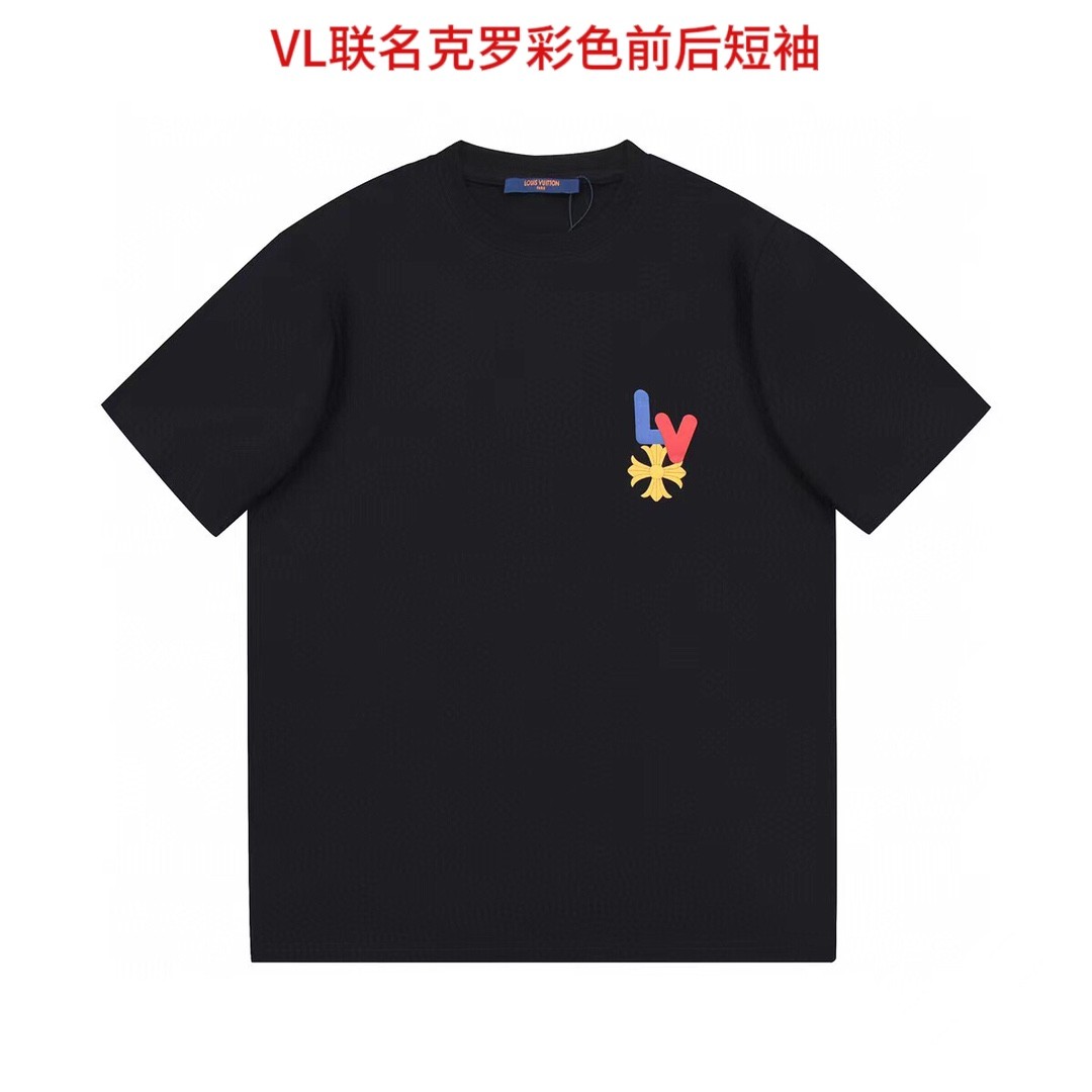 VL联名克罗彩色前后短袖lv路易威登LOUIS VUITTON 驴家1v 经典联名克罗心图案圆领半袖T恤短袖男女同款 情侣款 宽松版型 (最高版本 原版面料 高版本 高品