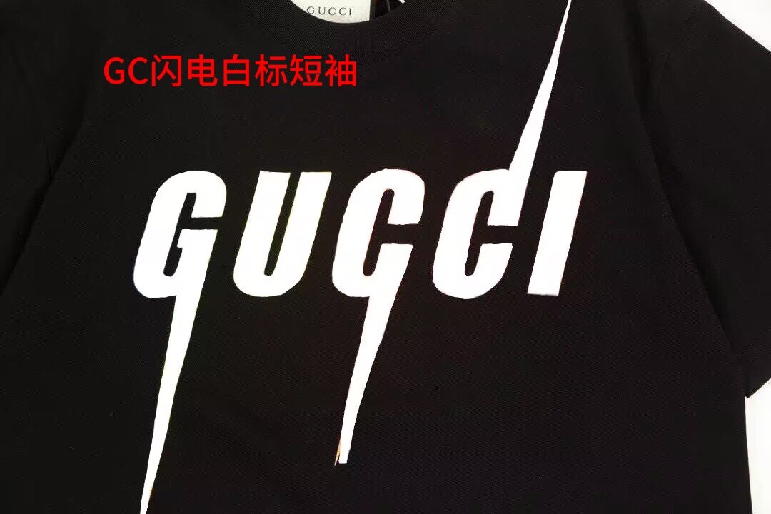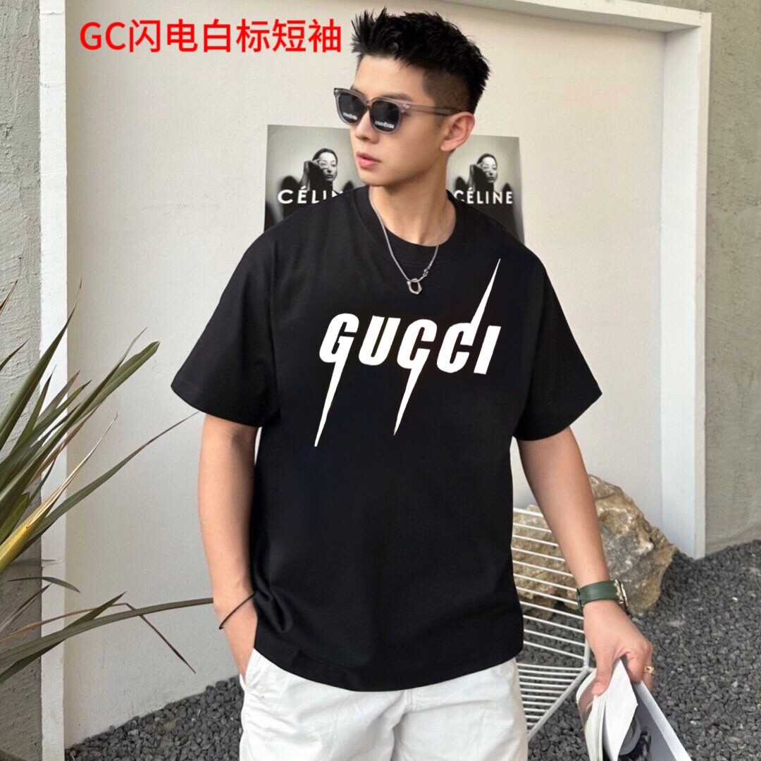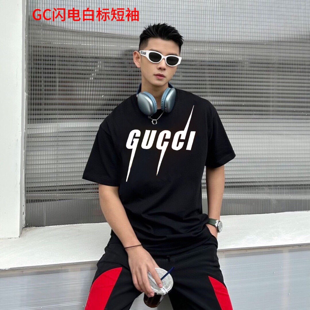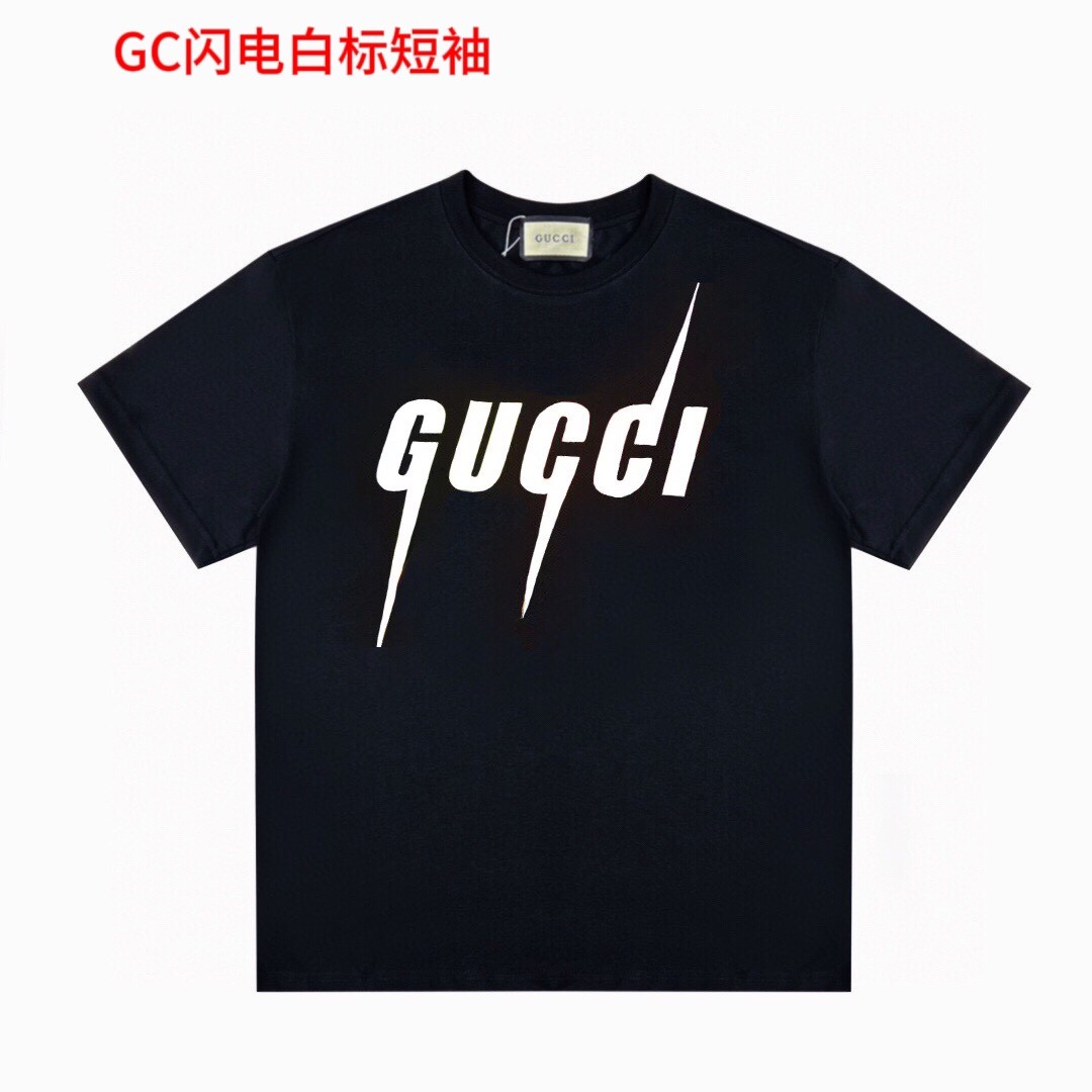 GUCCI- 古驰 2023新款款纯白色锋刃印花短袖短T官方同款同缸染面料 手感非常舒服 春夏最新砖柜同步 os落肩版型 时尚又个性 超级百搭好看的一款男女都非常合适 颜色:黑色尺码: M~4XL