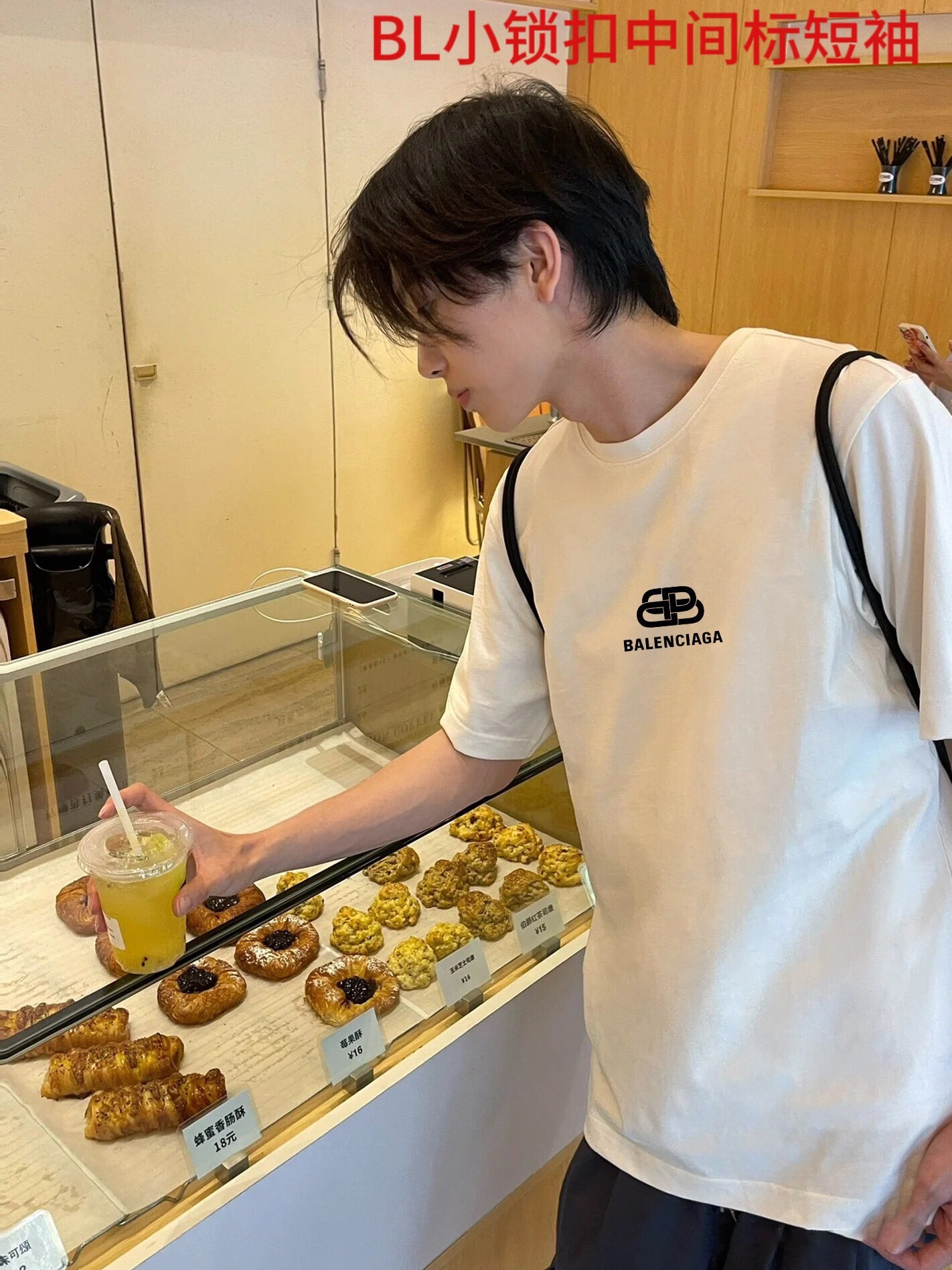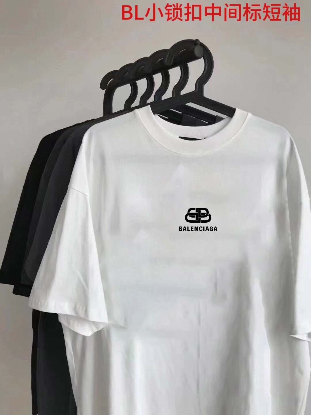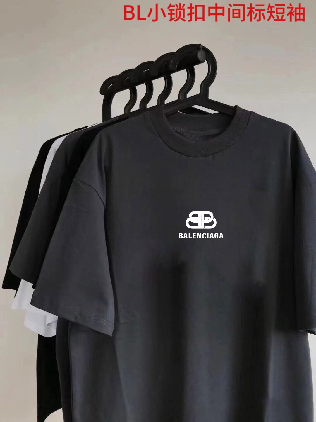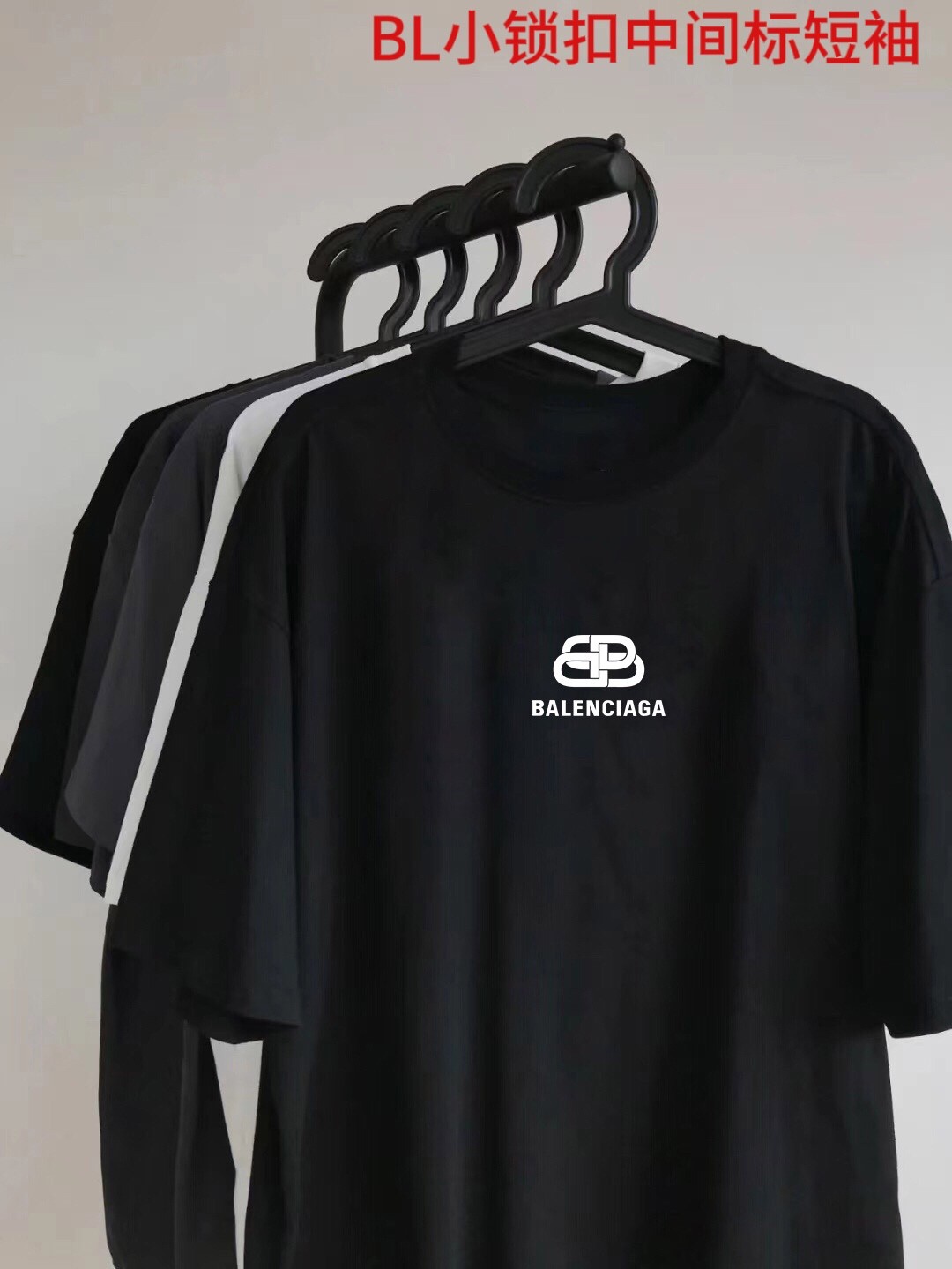BL小锁扣中间标短袖Balenciaga巴黎世家联名款经典锁扣logo男女同款情侣三色短袖定制精梳棉…