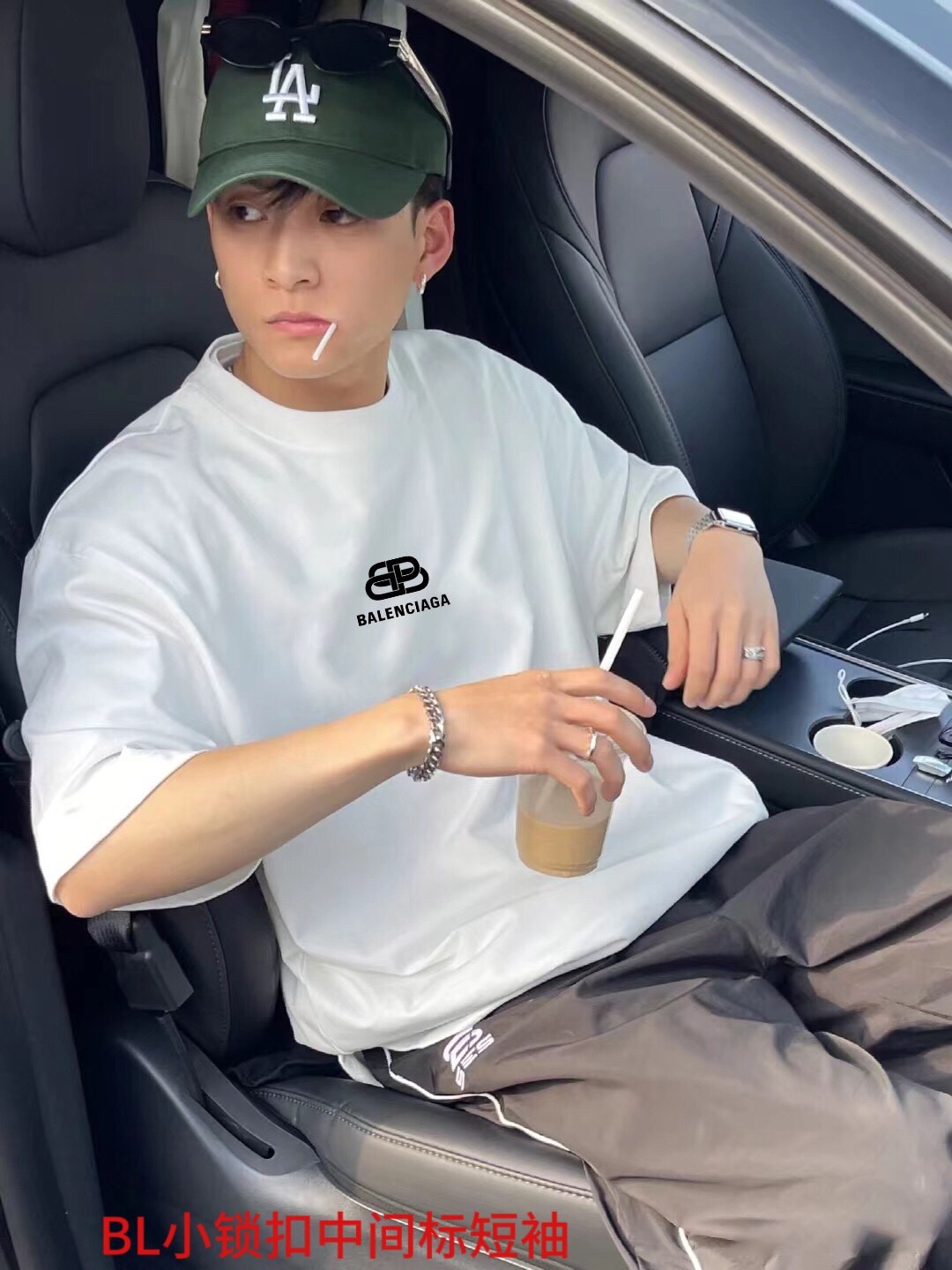 BL小锁扣中间标短袖Balenciaga巴黎世家联名款经典锁扣logo男女同款情侣三色短袖定制精梳棉,三针五线做工,领口包包边条,肩膀处内里带压条,做工面料细节都无法挑剔,印花采用进口浆料,高端的品质精致细腻,简直太完美了!版型宽松,男女都可以穿!颜色 白色 黑色 高级灰尺码m~4xl