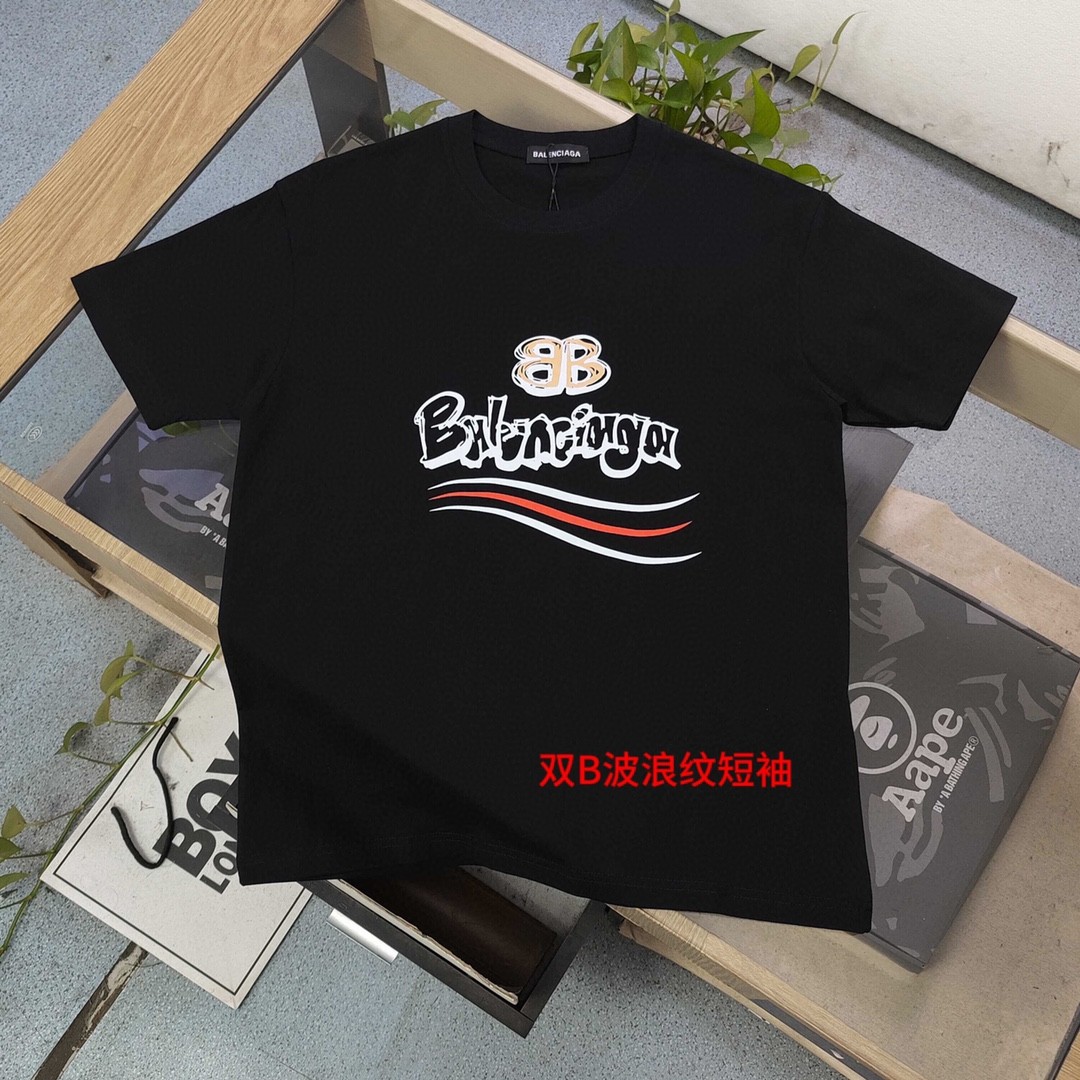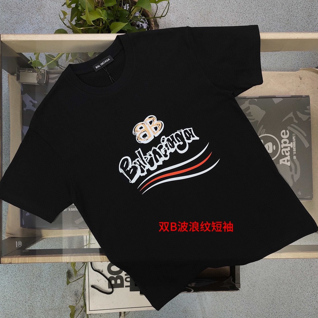 双B波浪纹短袖品质保证男女同款 情侣款