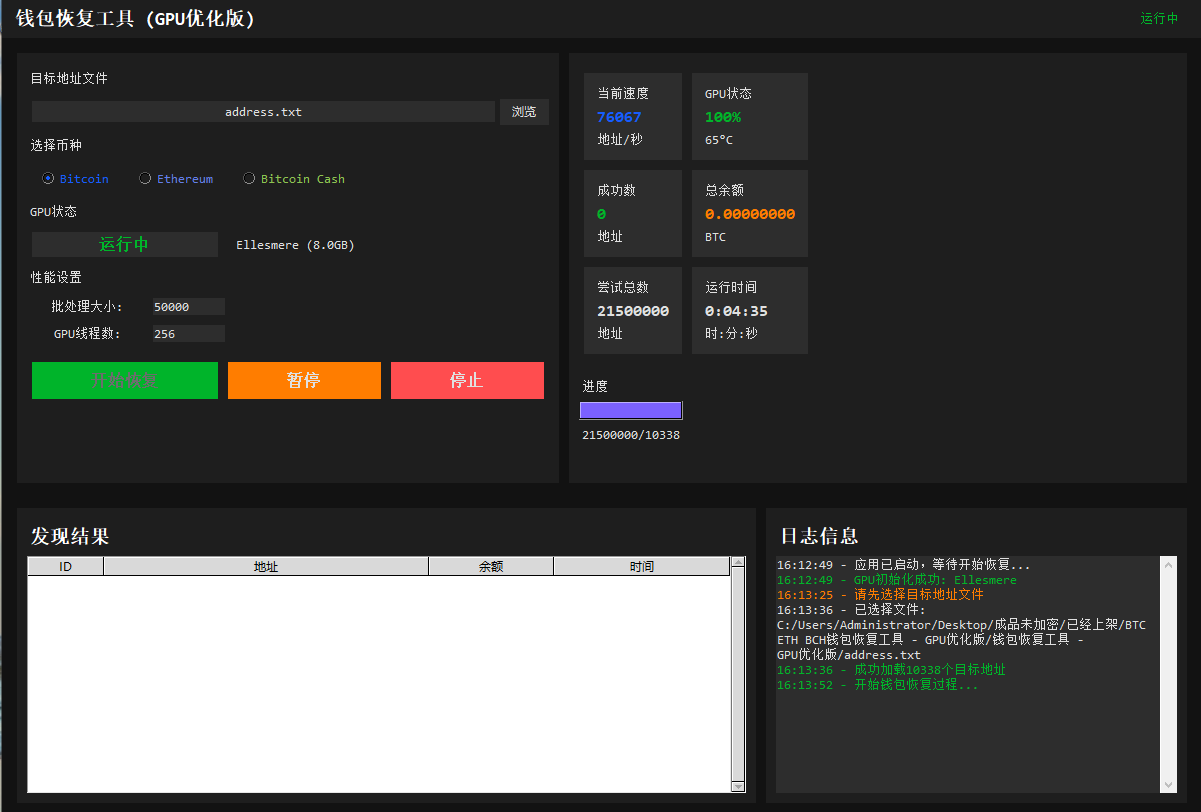 【高端精品】外面收费1999的全区块链上BTC/ETH/BCH休眠地址碰撞项目,号称单窗口收益四位数…