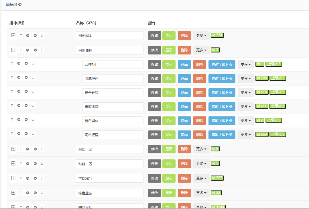 1.此功能在后台分类列表里可把二级分类进行叠加