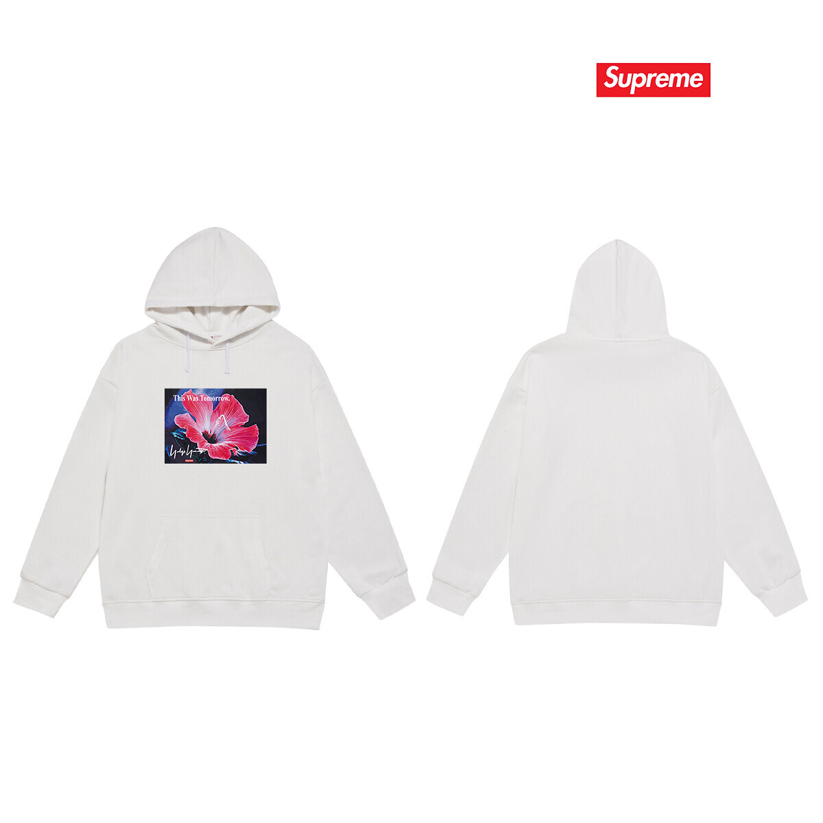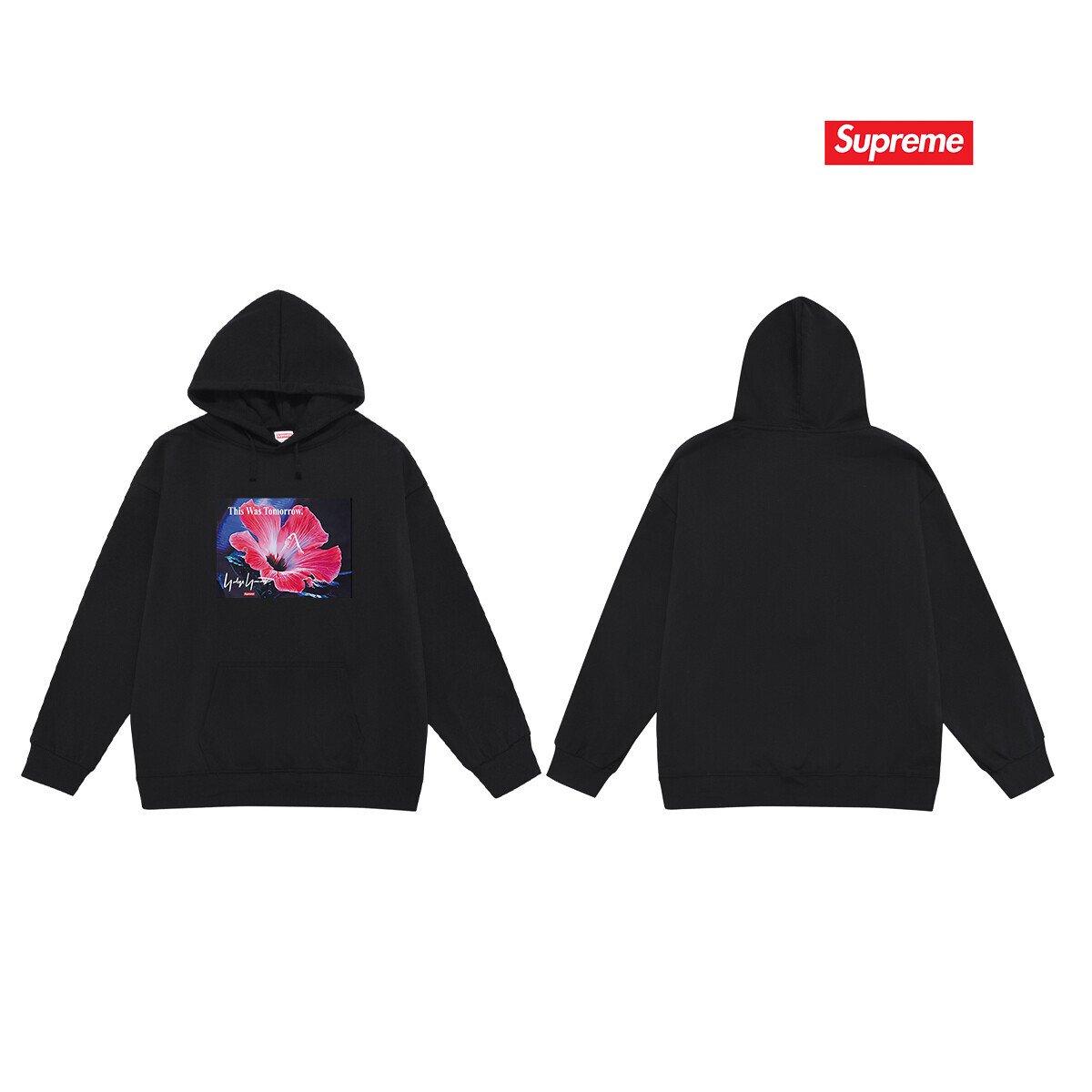 纯棉华棉350克Supreme 山本耀司联名花卉印花 连帽卫衣面料 质感柔软不起球 进口环保印花胶浆 图案鲜明立体 品质男女同款 上身即是潮人颜色:黑色 白色 灰色