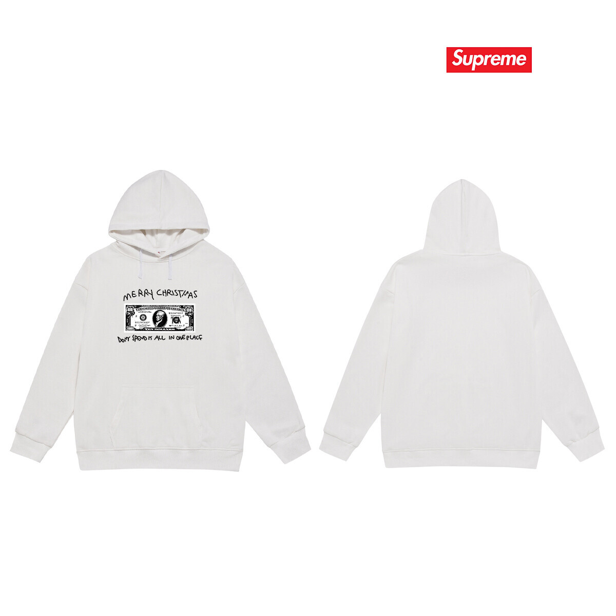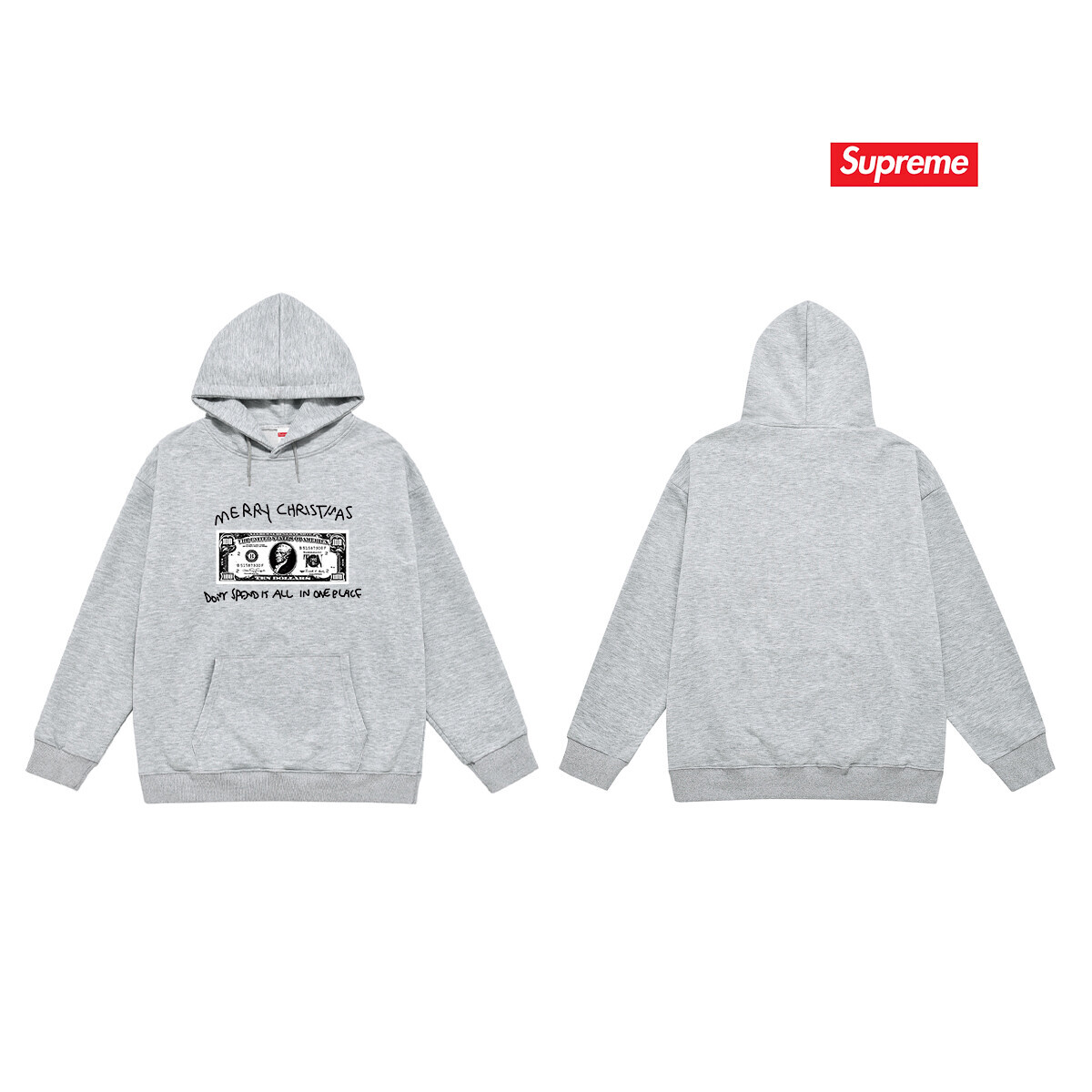纯棉华棉350克Supreme 21FW SPEND IT TEE美金圣诞印花 连帽卫衣面料 质感柔软不起球 进口环保印花胶浆 图案鲜明立体 品质男女同款 上身即是潮人颜色:黑色 白色 灰色