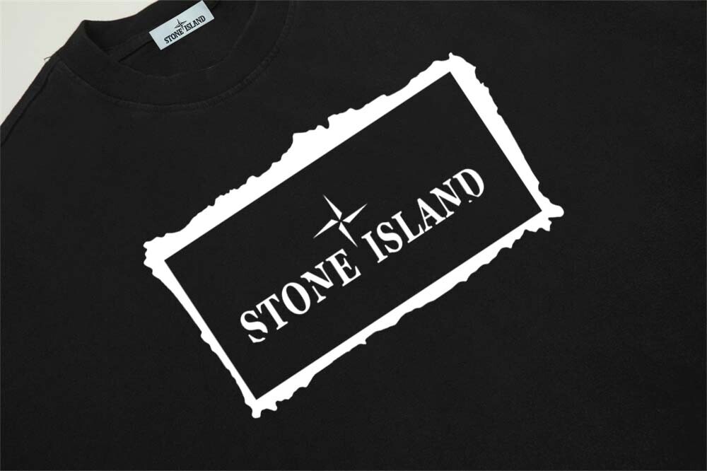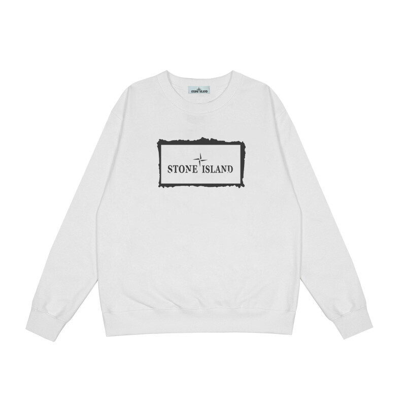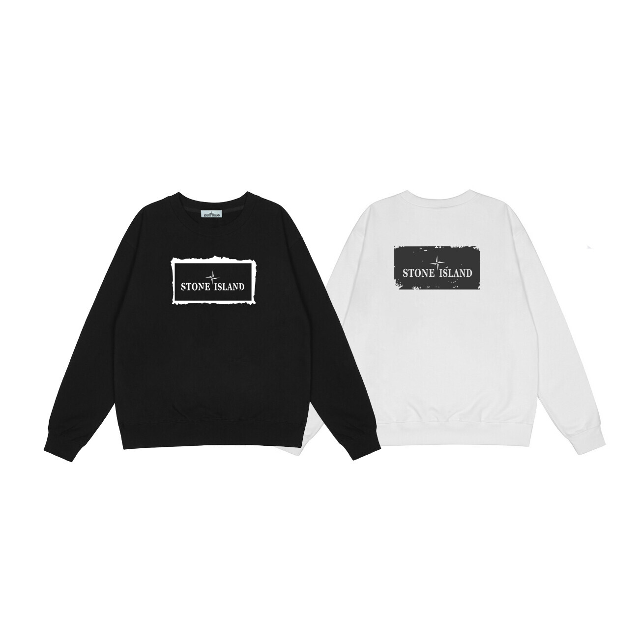 纯棉华棉350克Stone lsland/石头岛夏季新款前后印花圆领卫衣 黑色 白色