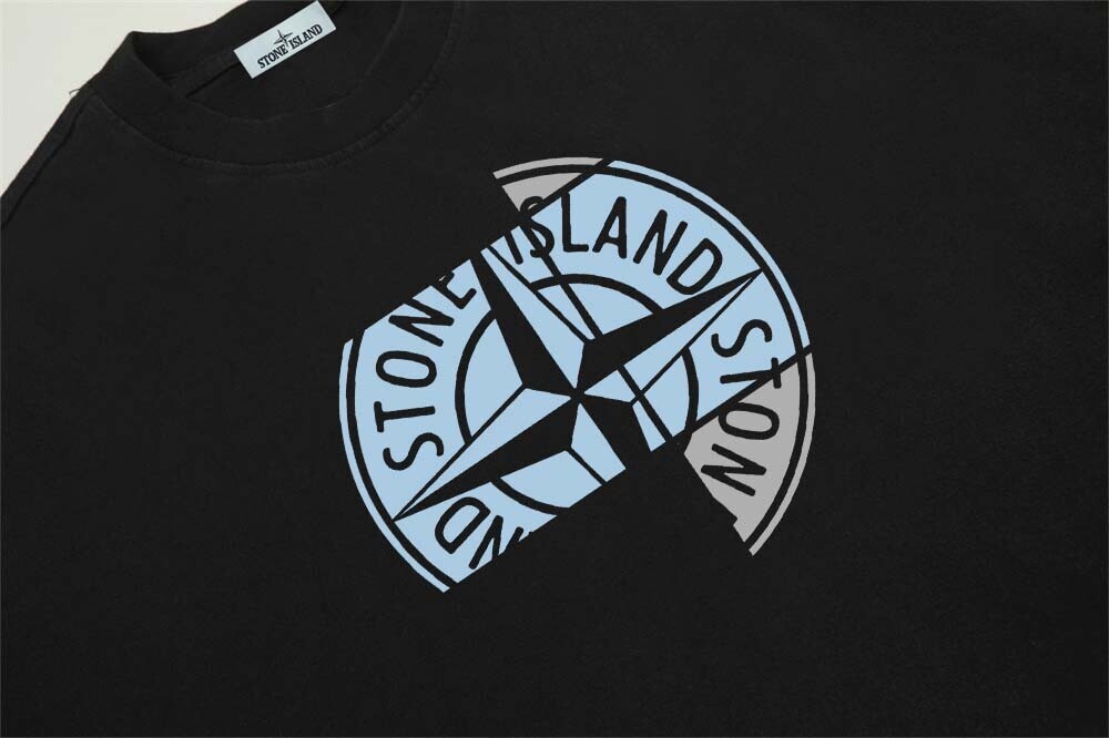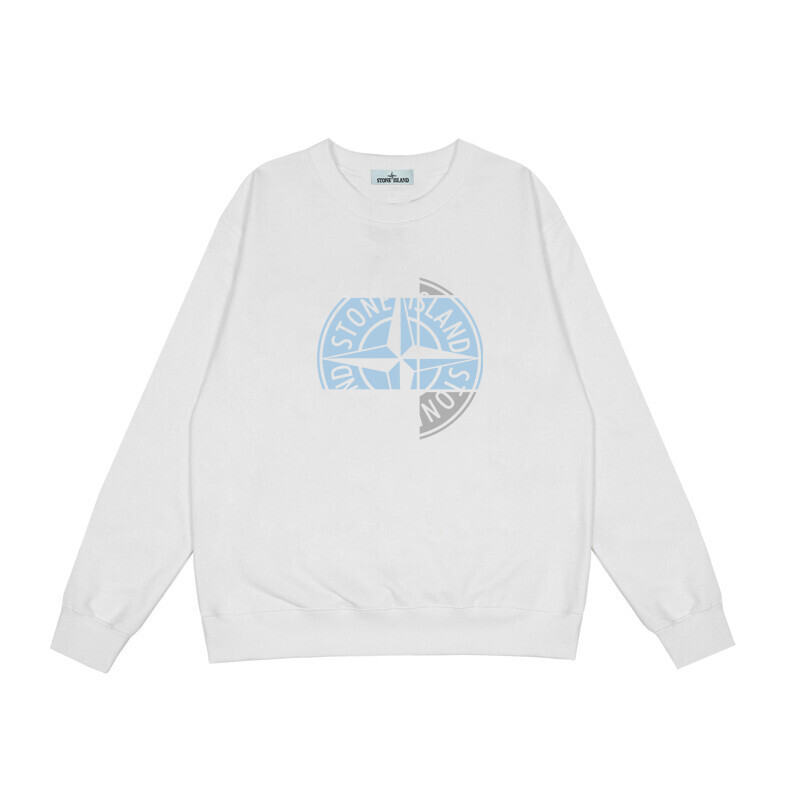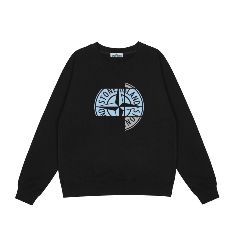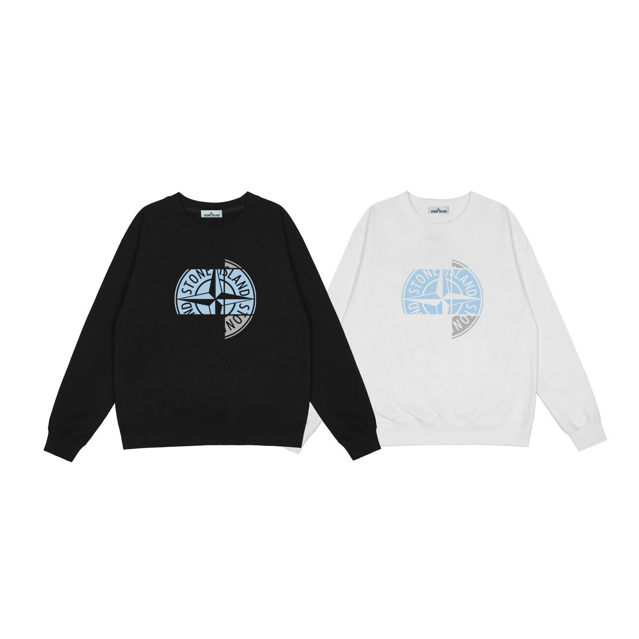 纯棉华棉350克Stone lsland/石头岛秋冬新款胸前破碎大罗盘印花图案圆领卫衣 黑色 白色