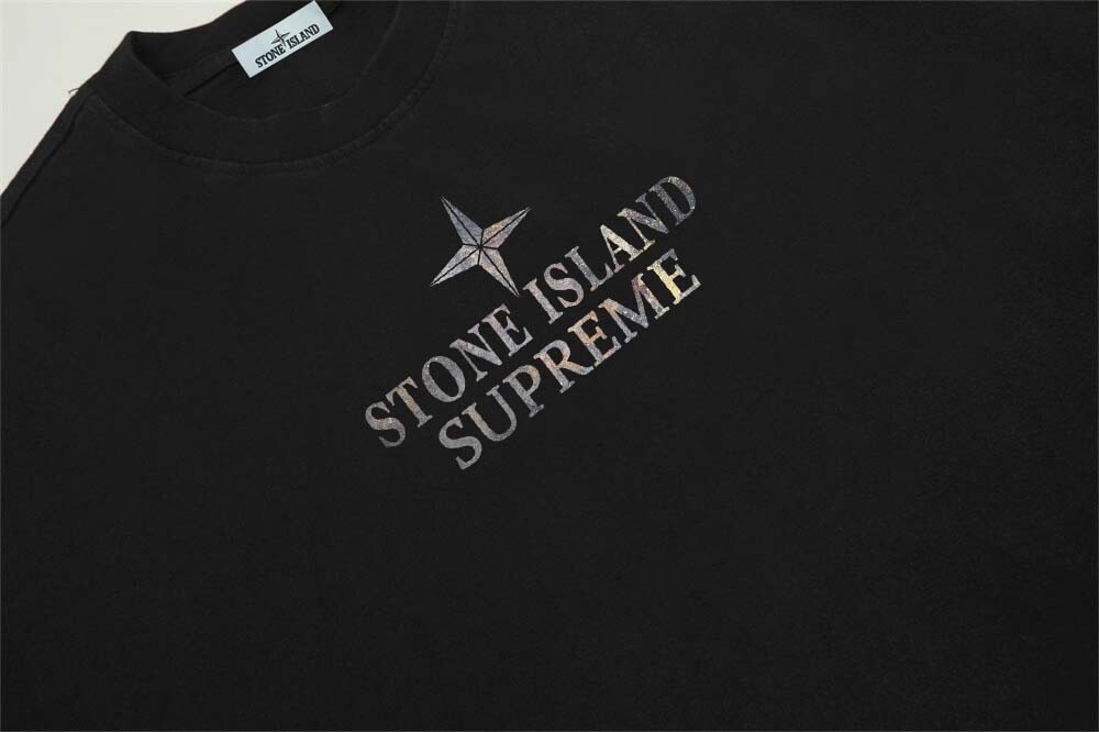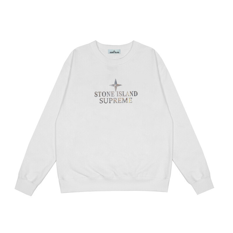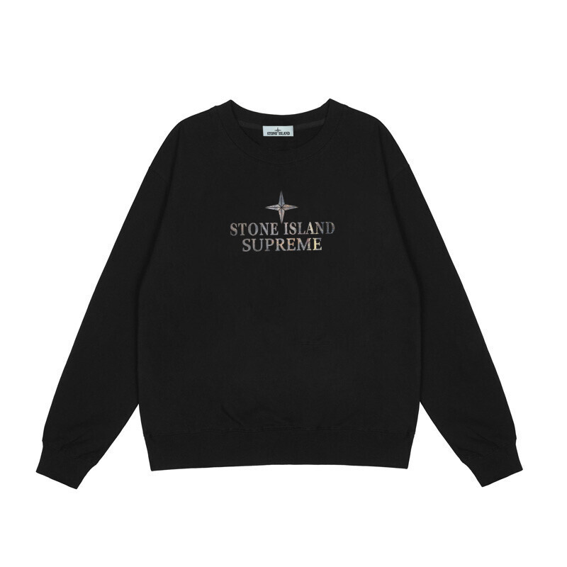 纯棉华棉350克Stone Island石头岛前印花男女宽松休闲圆领卫衣 黑色 白色