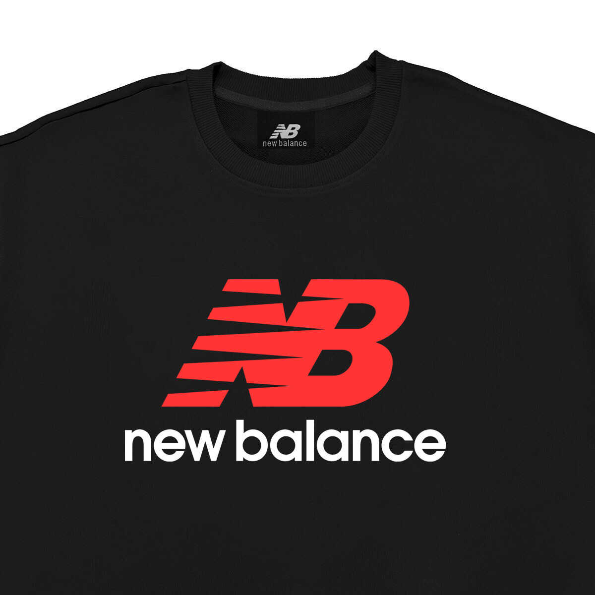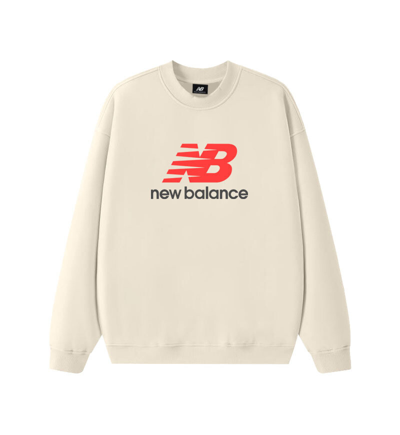 纯棉华棉350克New Balance SS25 NB纯色Logo红标字母圆领印花套头休闲毛圈卫衣 男女同款 颜色: 白色 黑色