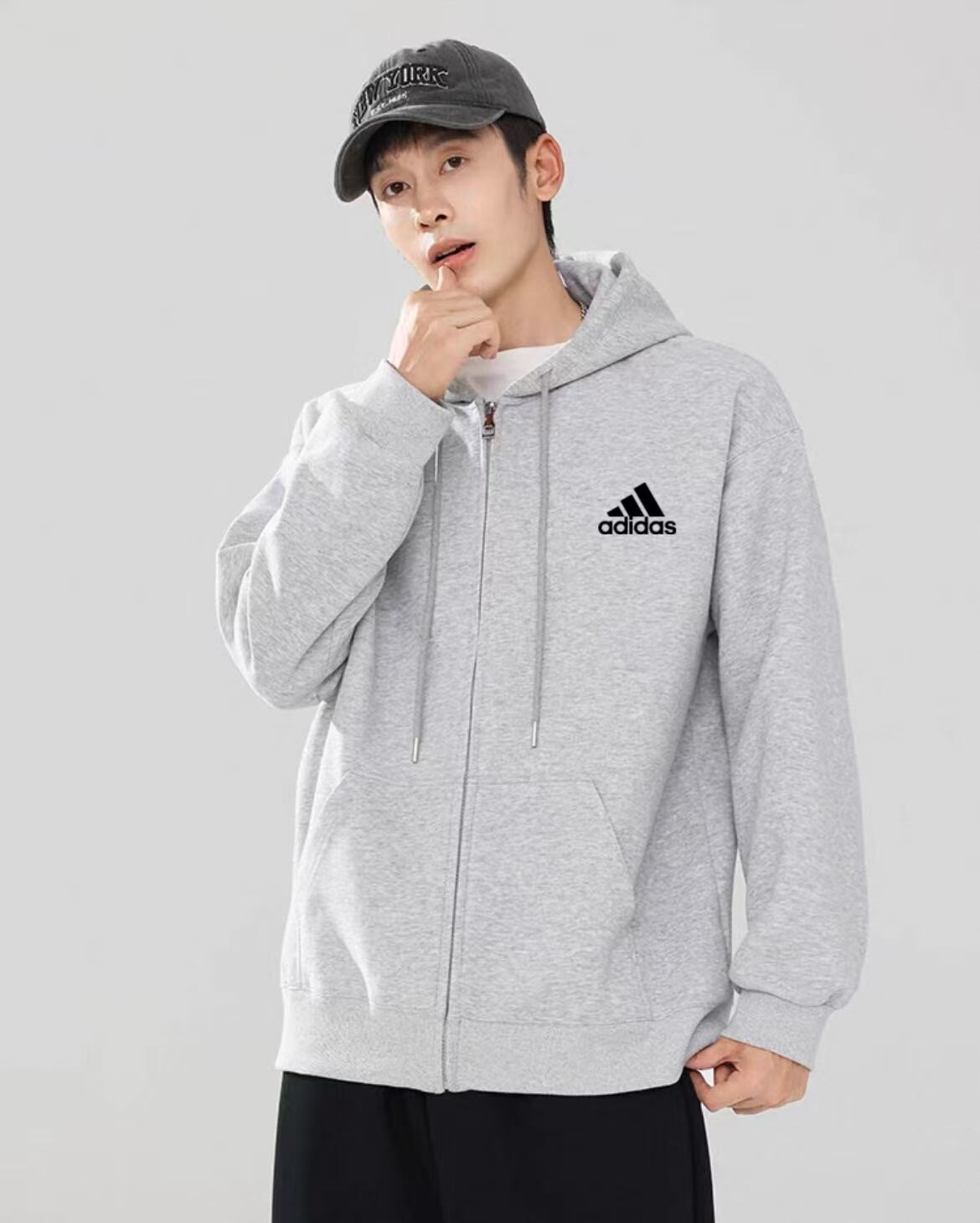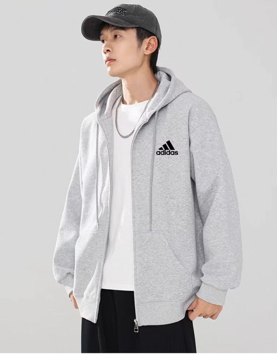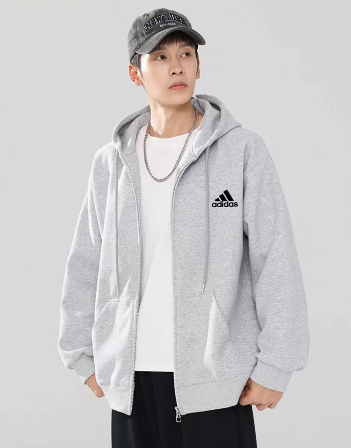 阿迪达斯Adidas三杠百搭落肩宽卫衣连帽华棉开衫外套】春秋百搭必备时尚单品 ,不起球不掉色,灰色干净有气质 不挑人穿 关键是随便搭配都好看!秋天在里面搭一件白色T恤打底衫 简约又休闲整件用的重磅棉 拿在手里很有分量感 上身满满的高级感颜色:黑色 灰色