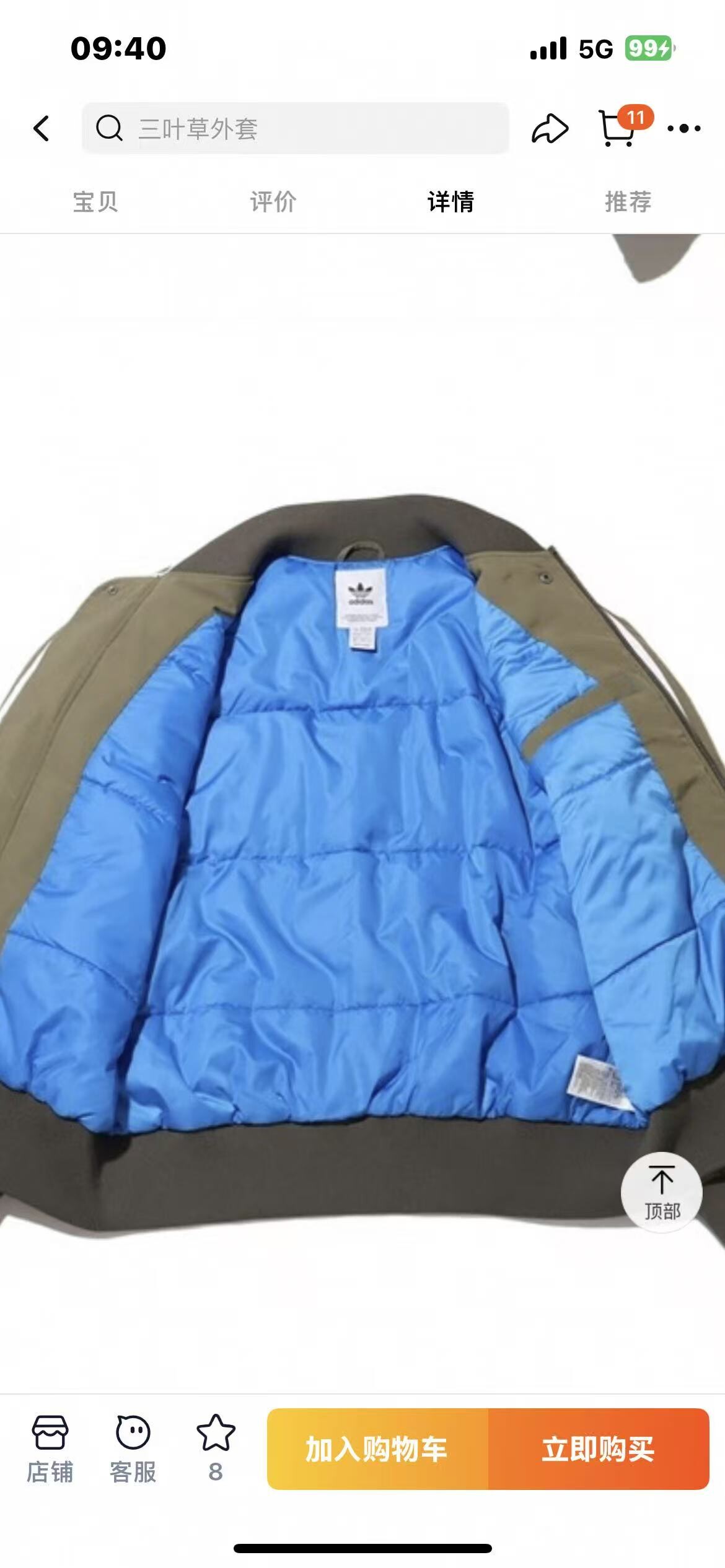 三叶草25冬季新款专柜同款男士休闲运动 保暖棉衣棉服【款号】: WS-3743棉【尺码】: S-2XL【颜色】: 黑色,绿色,【面料】: 聚酯纤维,