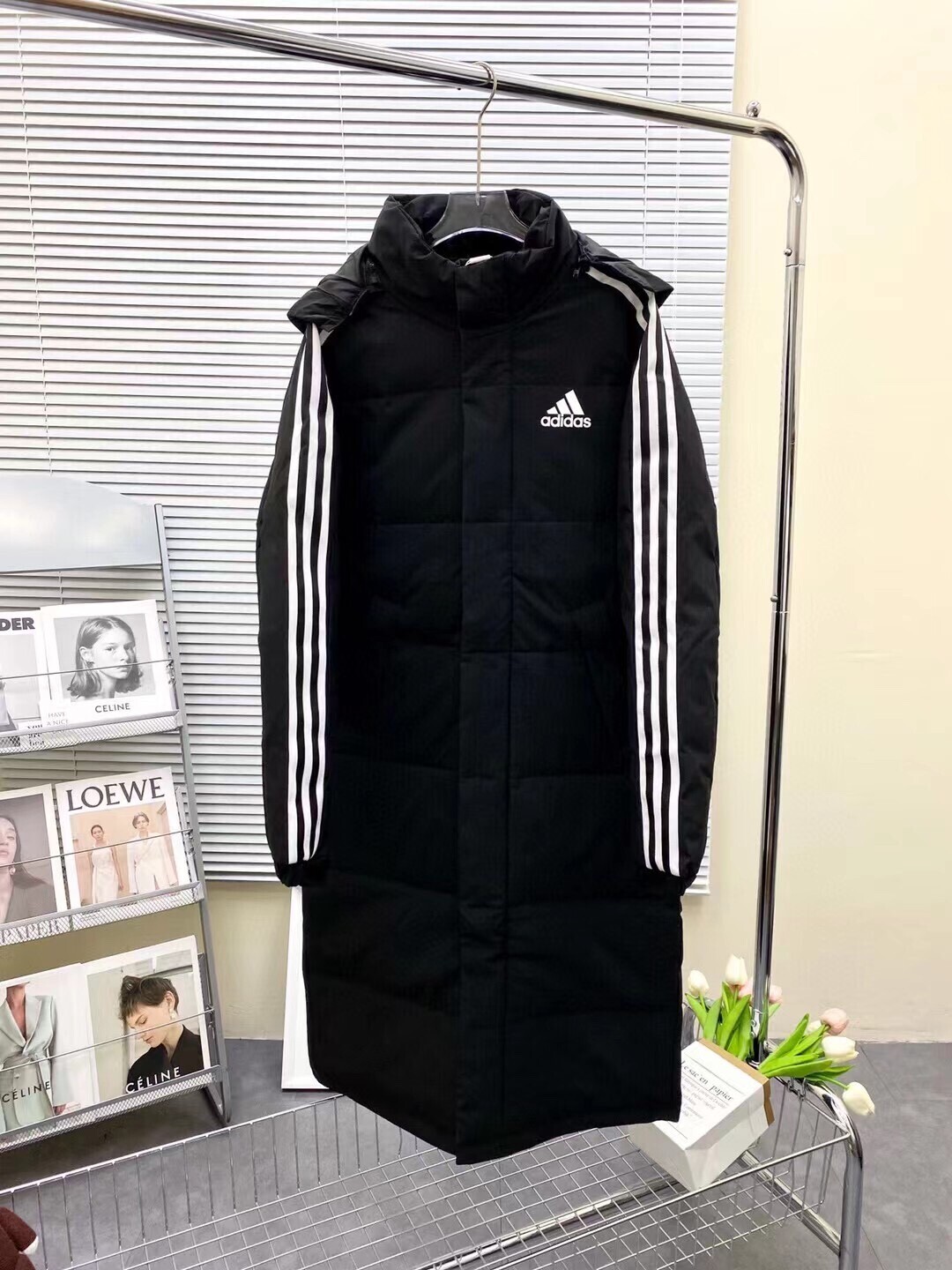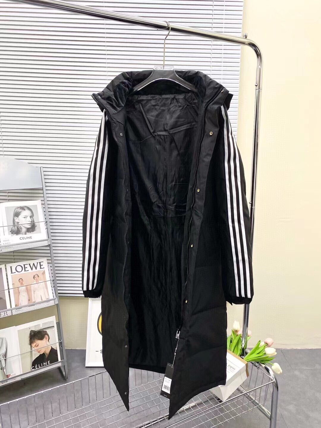 阿迪达斯Adidas印花织带男女长款连帽羽绒服原单渠道货源,真正来之不易的好东西!经典三条杠织带设计…