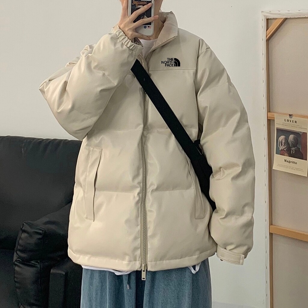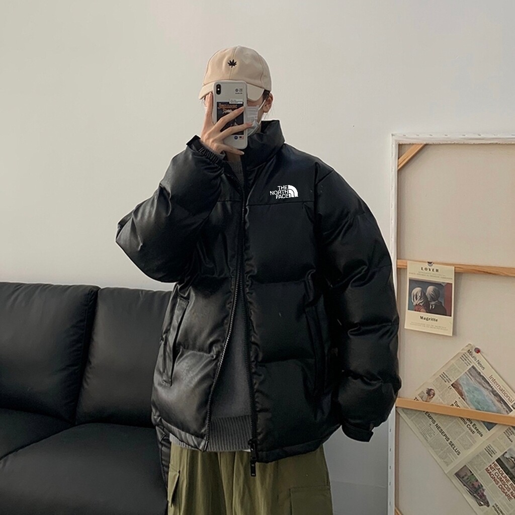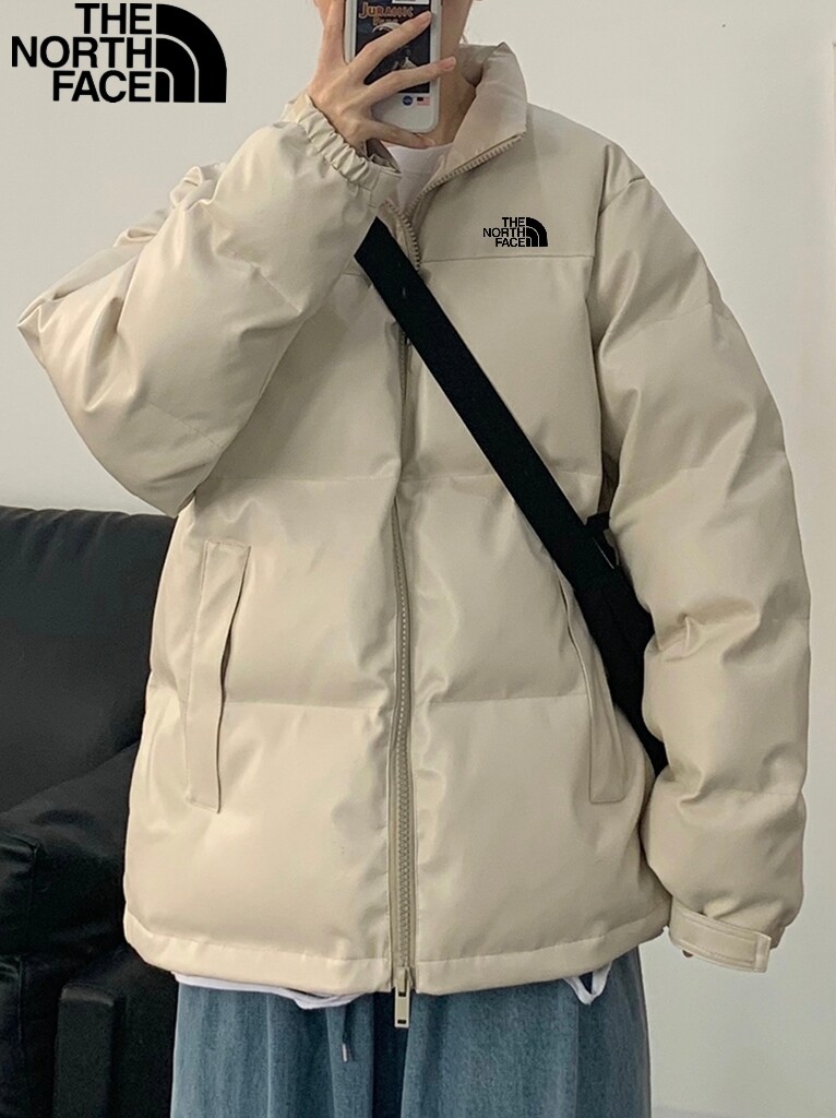 北面The North Face印花加厚防风防雨皮外套保暖加厚皮质情侣羽绒棉服,皮衣冬天必须要有一件…