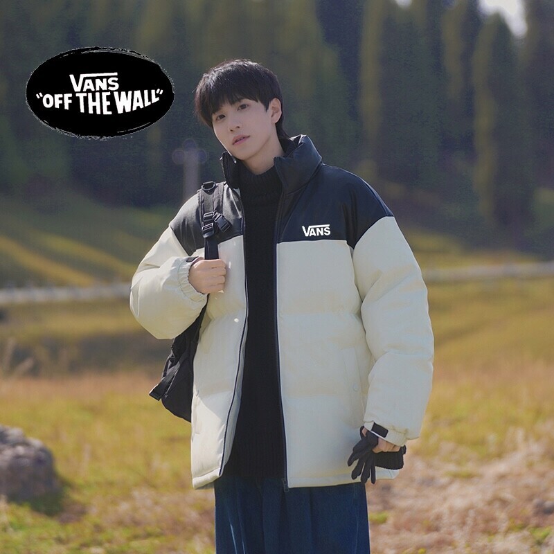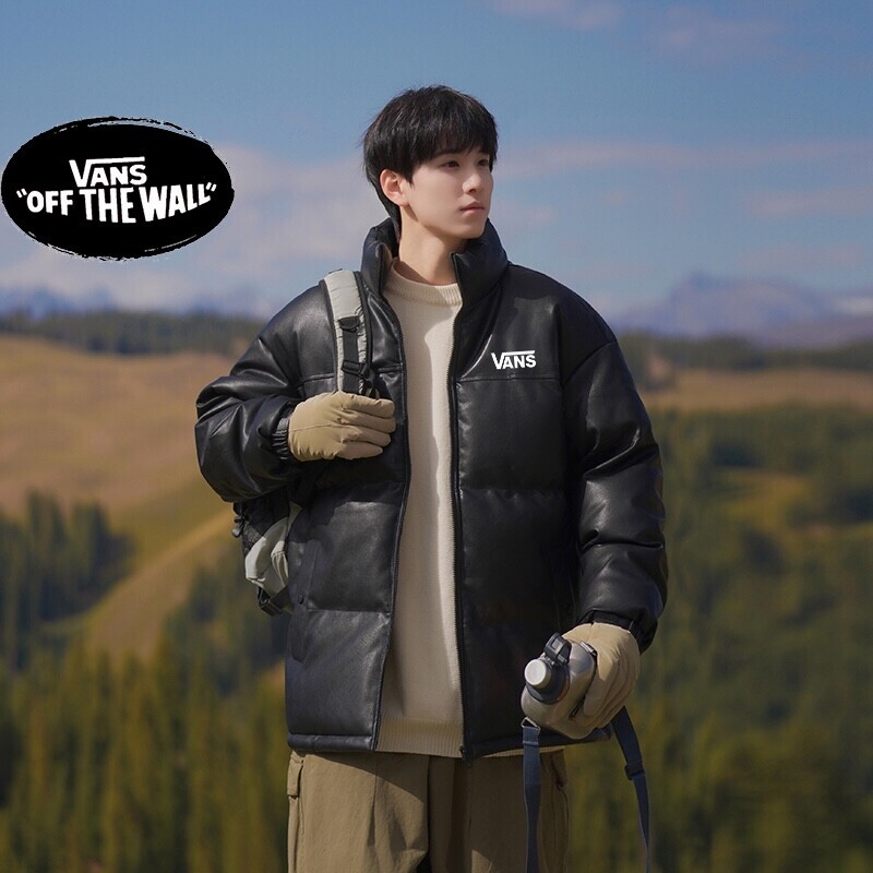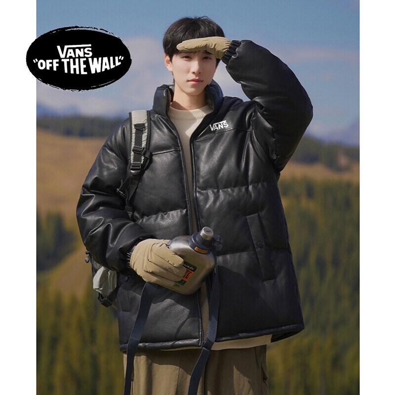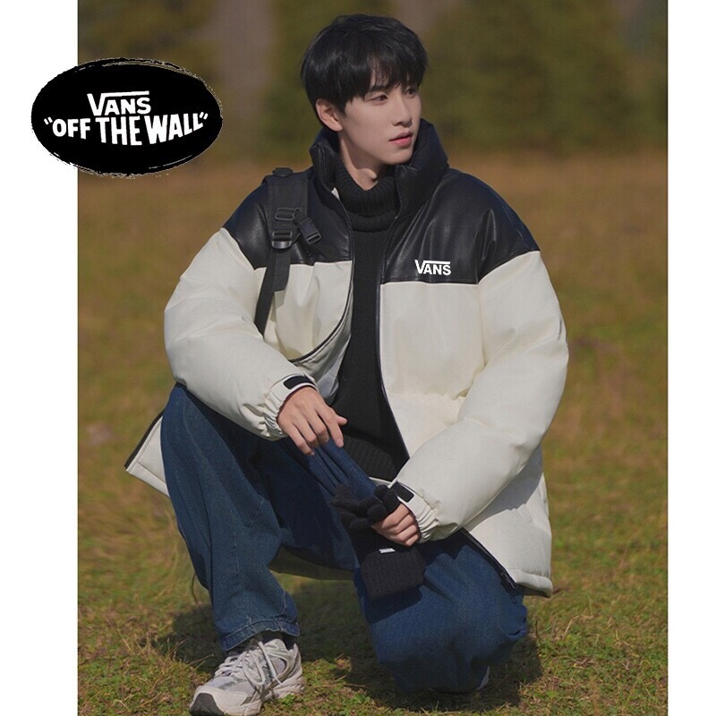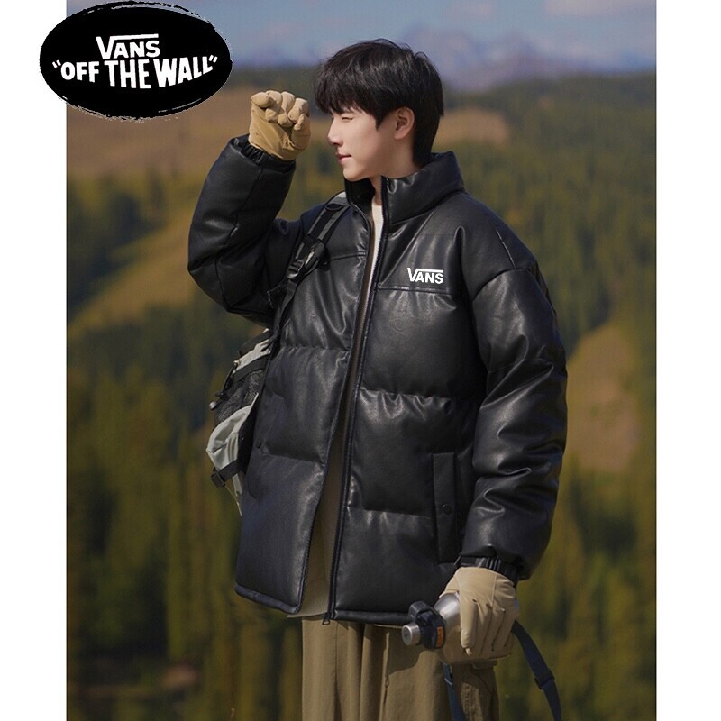 VANS万斯冬季专柜新款拼接亮皮防水高品质羽绒皮衣棉服棉衣外套 男女同款 亮皮拼接设计 男生女生情侣都可以搭配。内里填充羽绒棉 保暖有型蓬松度