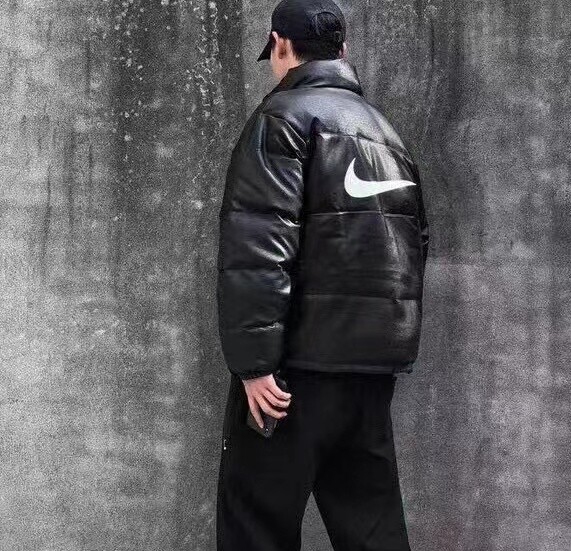 Nike/耐克Pu皮冬季情侣款后背大勾羽绒棉服面包服,小红书ins爆火,上身帅气百搭不挑人,休闲运动均可驾驭,经典永不过时系列绝佳冬季出行穿搭必