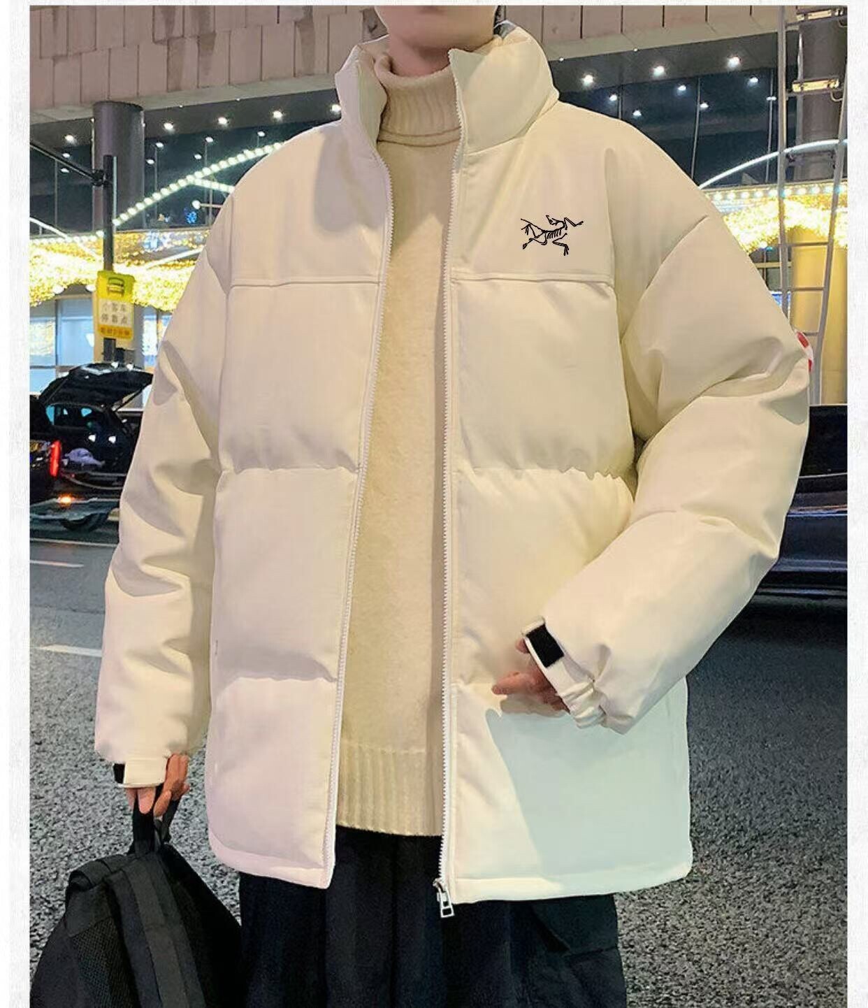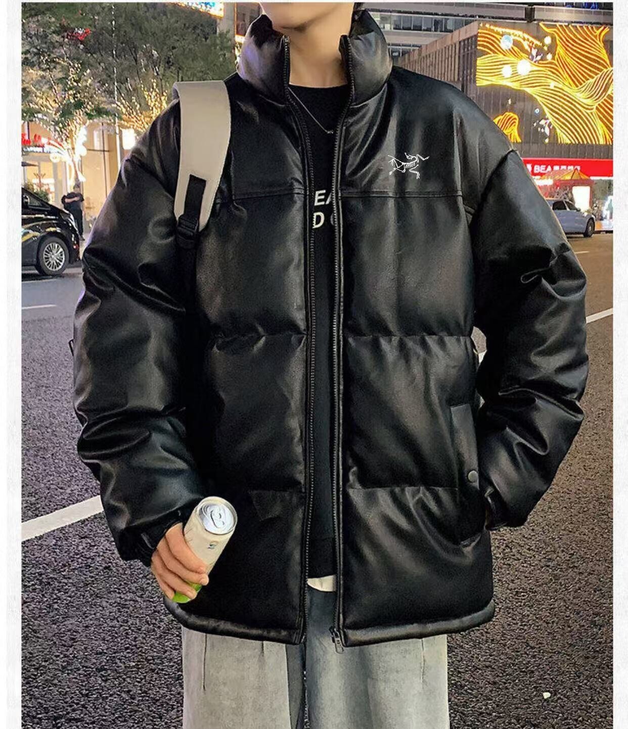 始祖鸟 2024秋冬新款皮衣 棉服情侣立领皮衣外套潮流百搭皮质立领羽绒棉服 ins小红书爆款!采用人造皮革PU 材质A2206,耐磨性强 。可以水洗还容易保养 整身300~400g充绒 保暖性强 零下20度也不怕!颜色: 黑色 白色 白插黑尺码:M-4XL