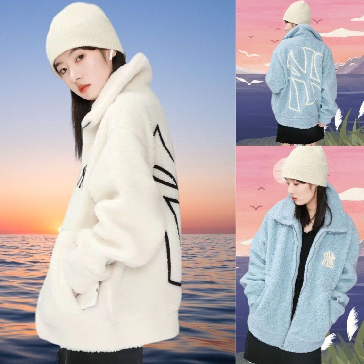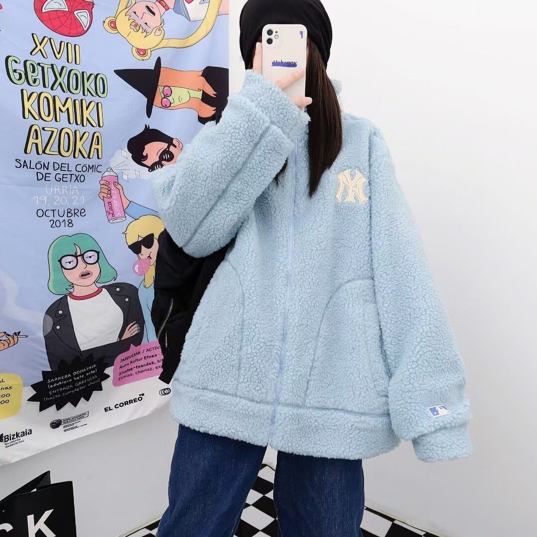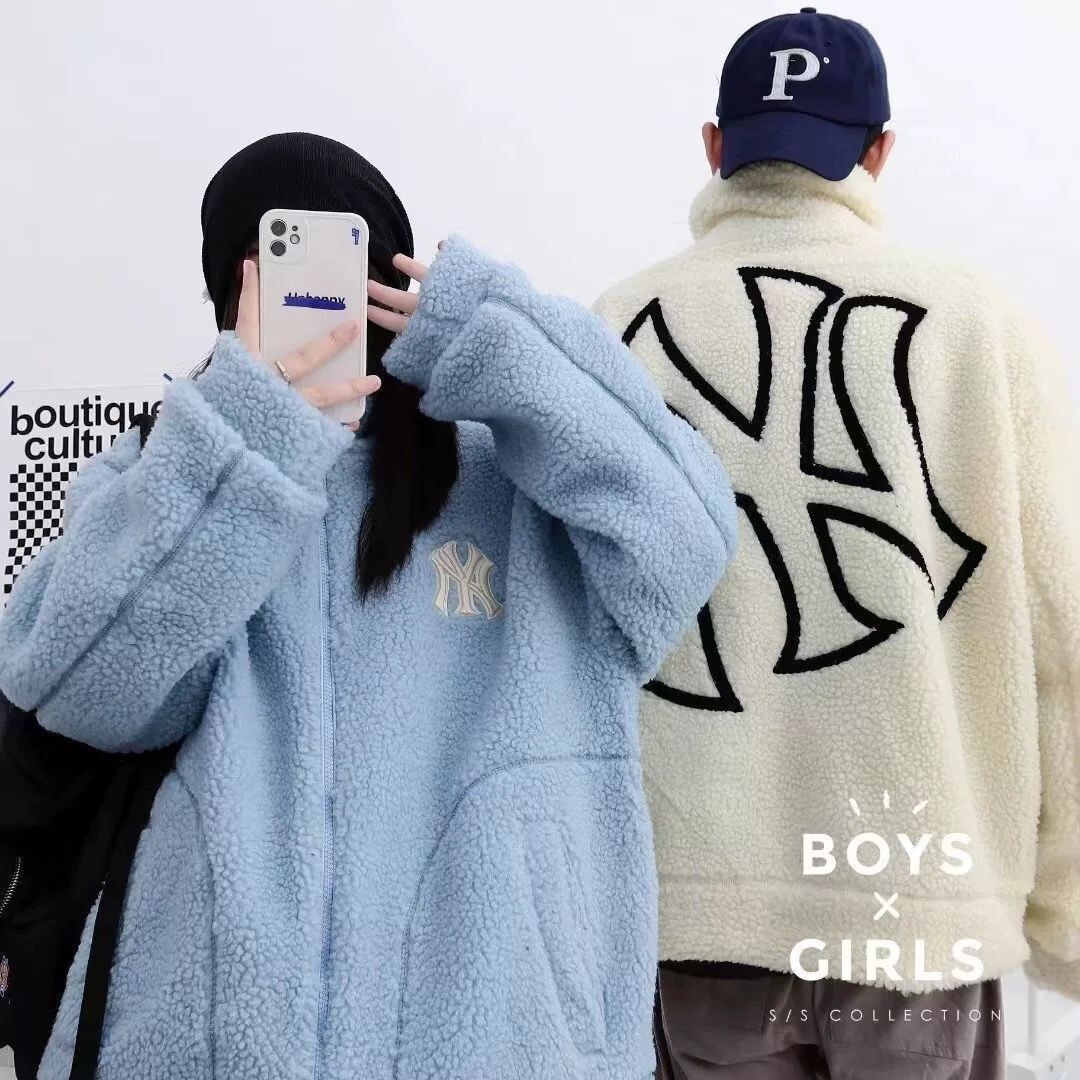 NY 洋基队冬季新款专柜情侣运动外套夹克 加绒保暖外套【款号】: ZH-0216棉【尺码】: S-2XL 【颜色】: 黑色,蓝色,白色【面料】: 羊羔绒,绣标