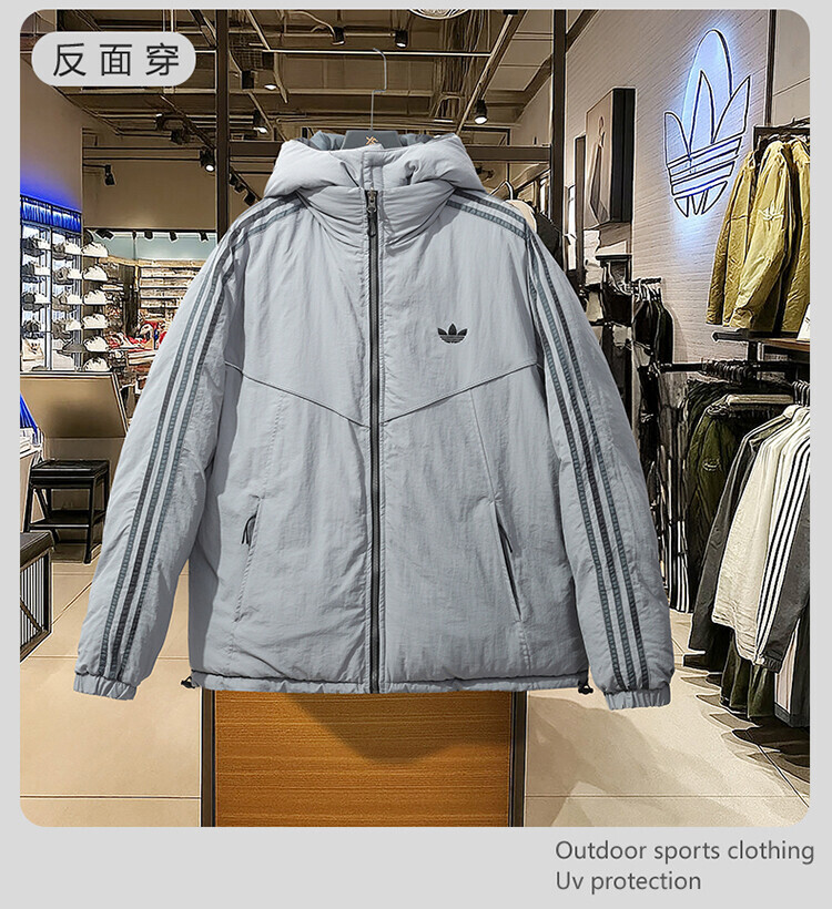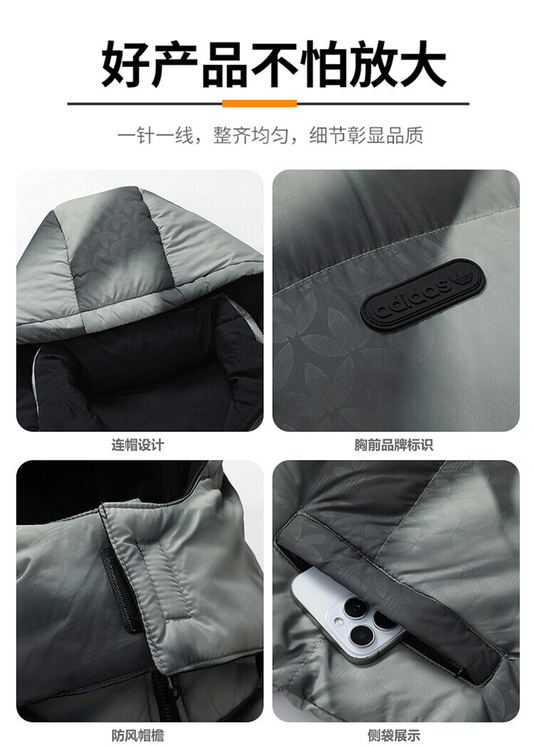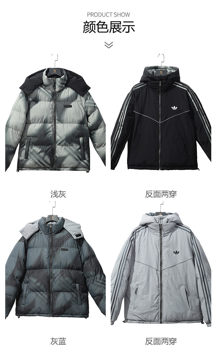阿迪达斯三叶草25冬季新款专柜同款男士休闲运动 保暖棉衣棉服【材质】(绣花,三标一致塔斯隆,涤纶印花) 【款号】3745双面穿棉衣绣【颜色】黑色 灰色【尺码】S_2XL