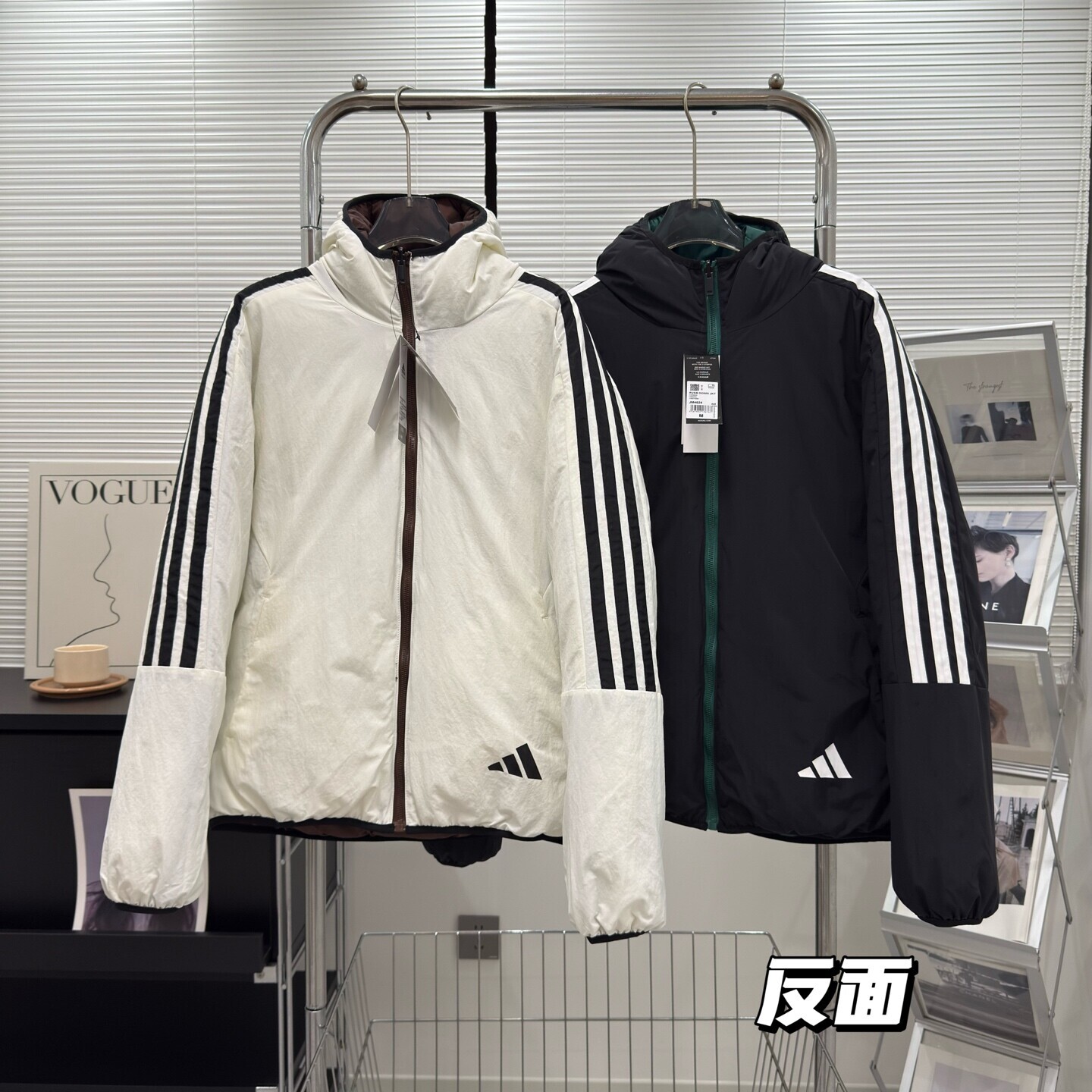 (双面穿棉服)Adidas/阿迪达斯三叶草25Ss专柜双面穿男女同款棉服外套!ins 小红书推荐火爆款重磅上市!上半身宽松百搭!一面经典阿迪经典标志性 一面三