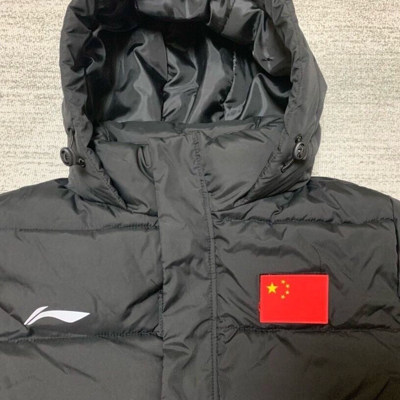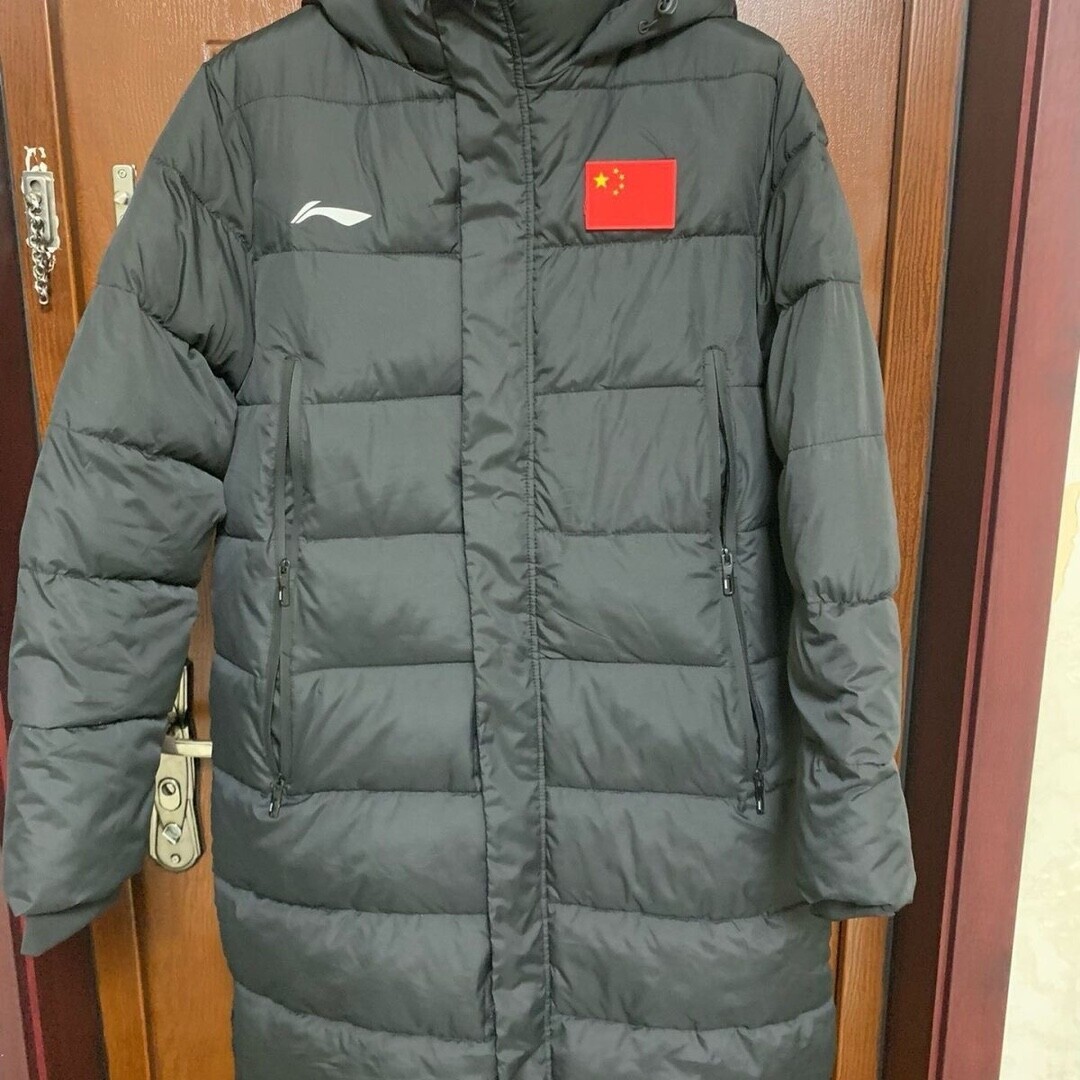 李宁体育生国家队冬训大衣田径羽绒棉服国标冬季长款过膝外套黑金