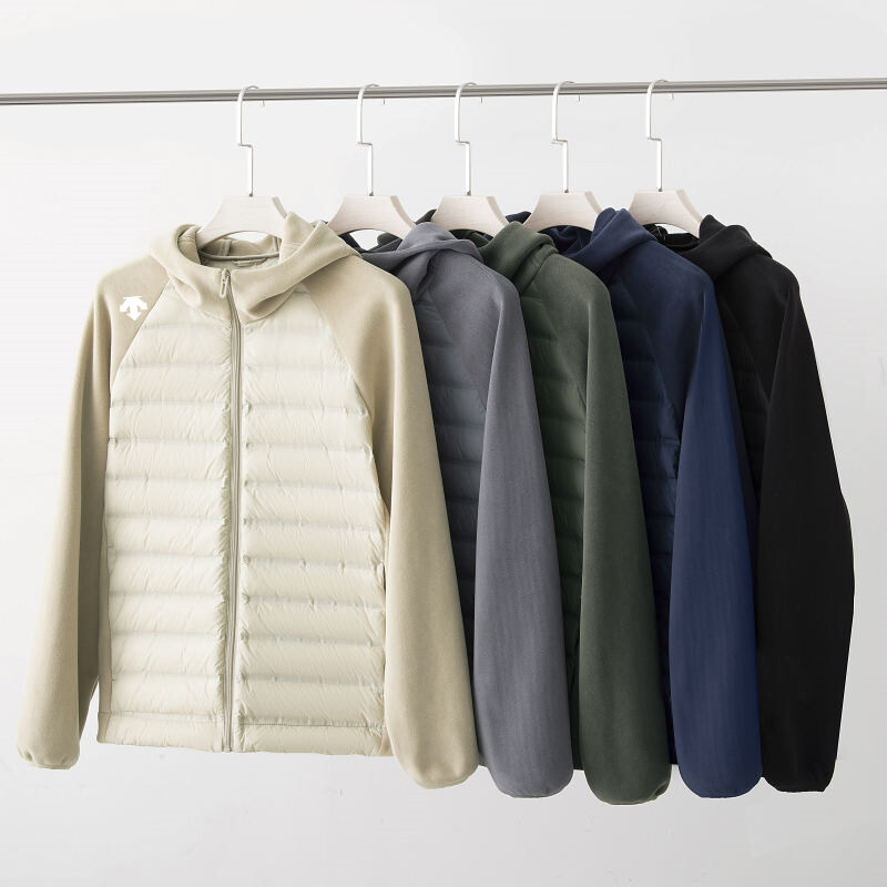 【白鸭绒】DESCENTE迪桑特25秋冬新款!男士户外运动休闲经B1319典百搭拼接连帽羽绒服!90鸭绒秋冬新款迪家同款摇粒绒拼接连帽羽绒服!90%新国标白